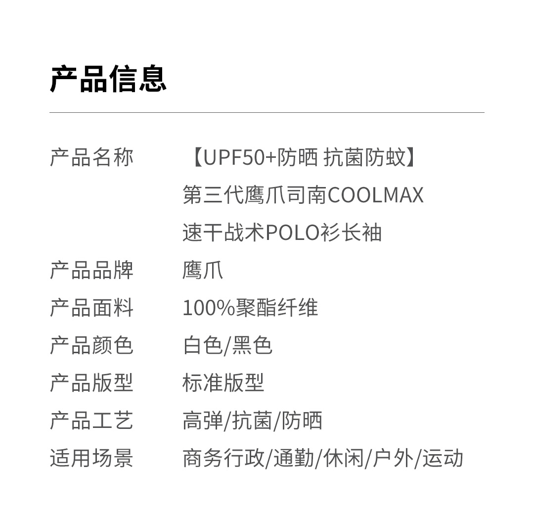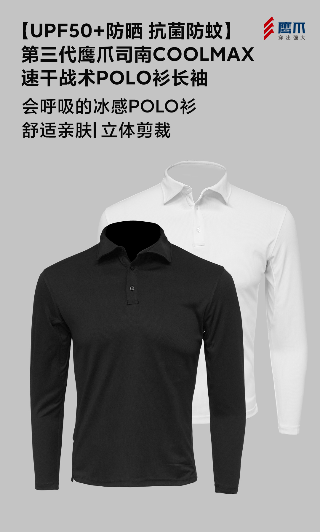【UPF50+防晒 】第三代鹰爪司南COOLMAX速干战术男士POLO衫长袖T恤