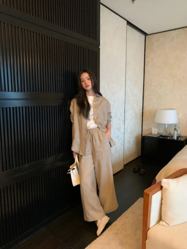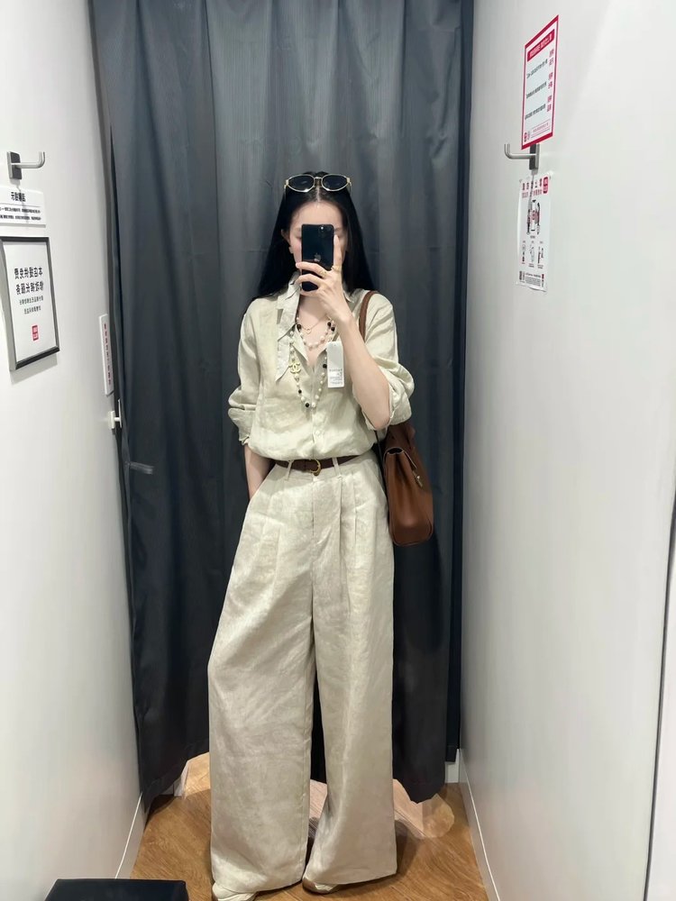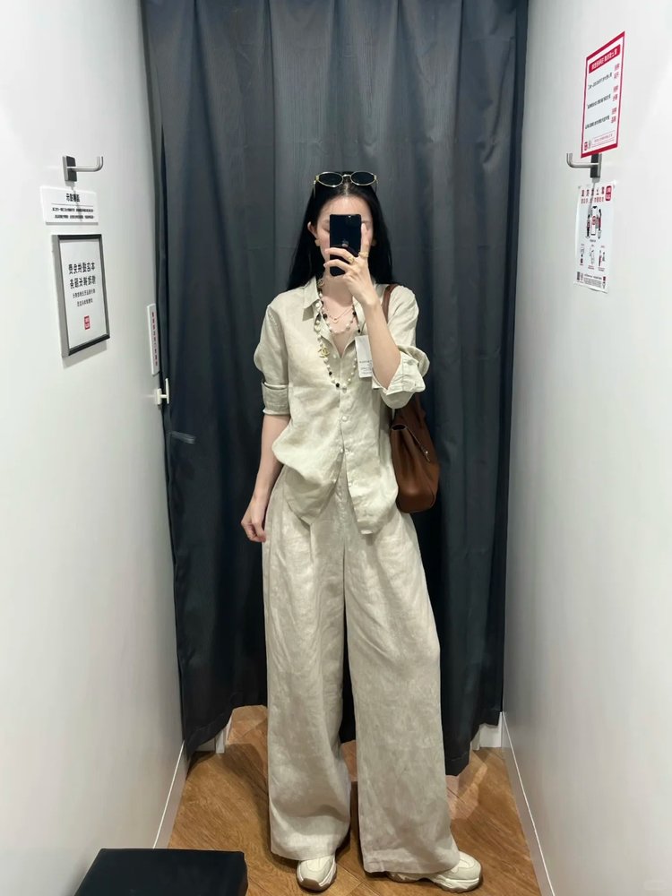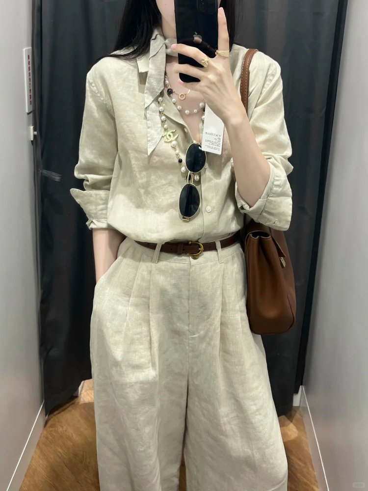 【高品质私服】【LP老钱风亚麻宽松口袋衬衫+阔腿长裤】宽松剪裁,慵懒随性,不挑身材还显瘦G1521/G1522-CC【无标出货 介意慎拍】