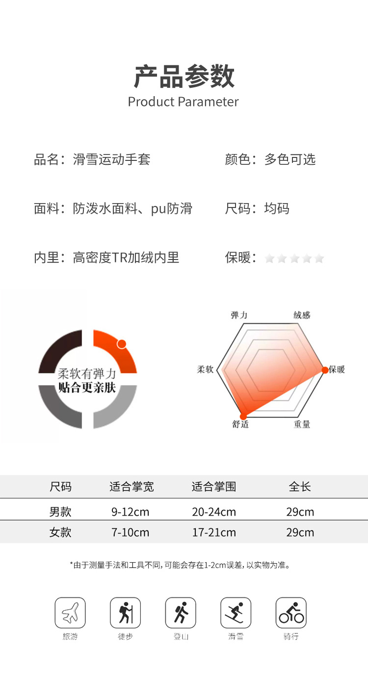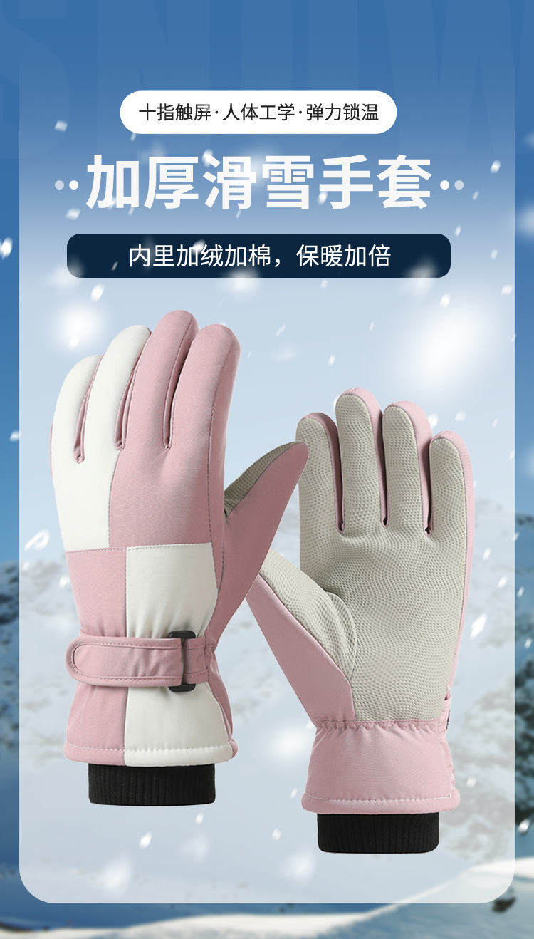 冬季滑雪手套男女加厚防水触屏加绒户外骑行电动车防风防寒保暖手套