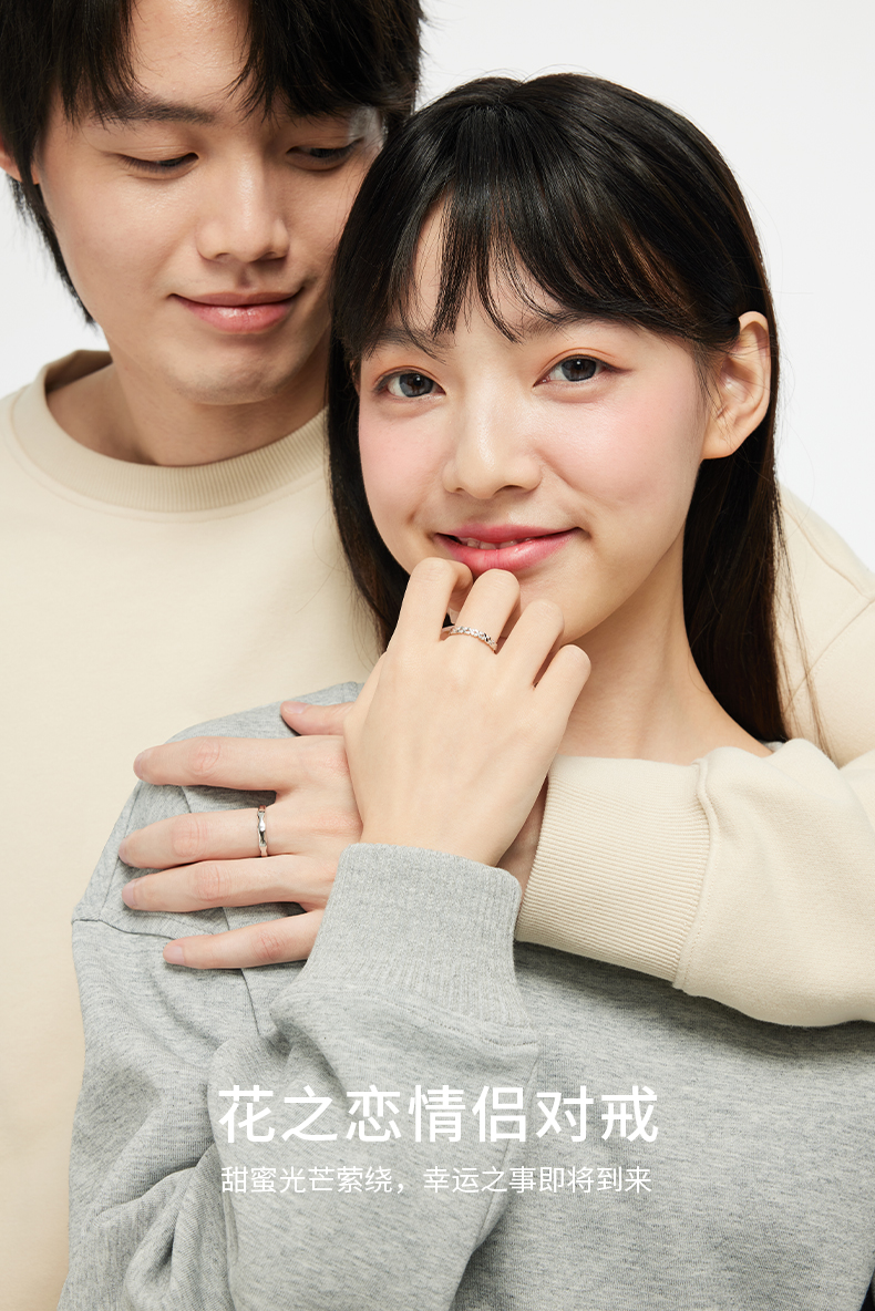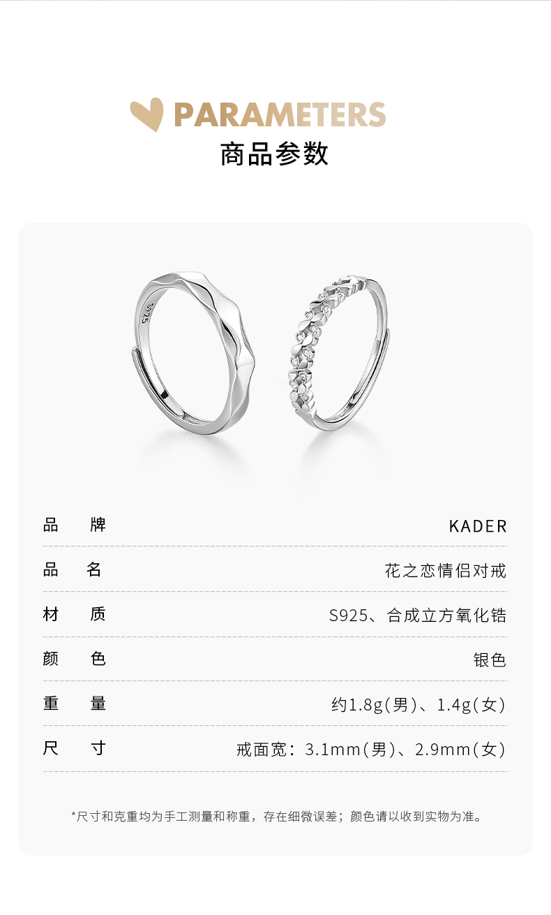 KADER卡蒂罗 花之恋 浪漫小众设计戒指 镶钻S925银 对戒 男女同款情侣款