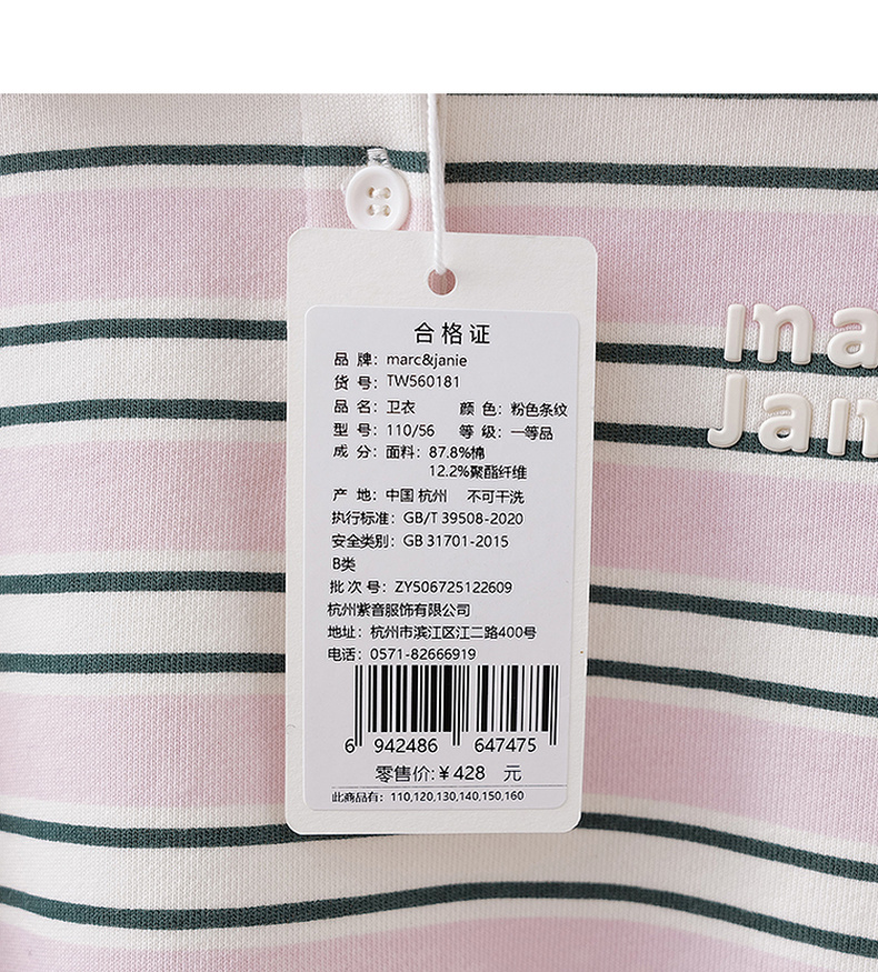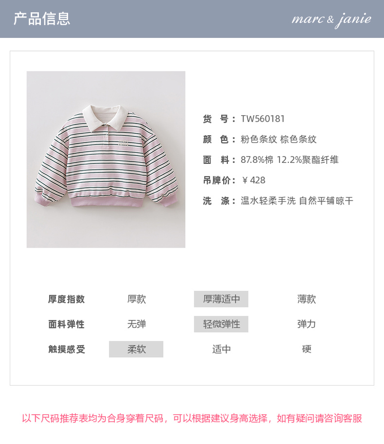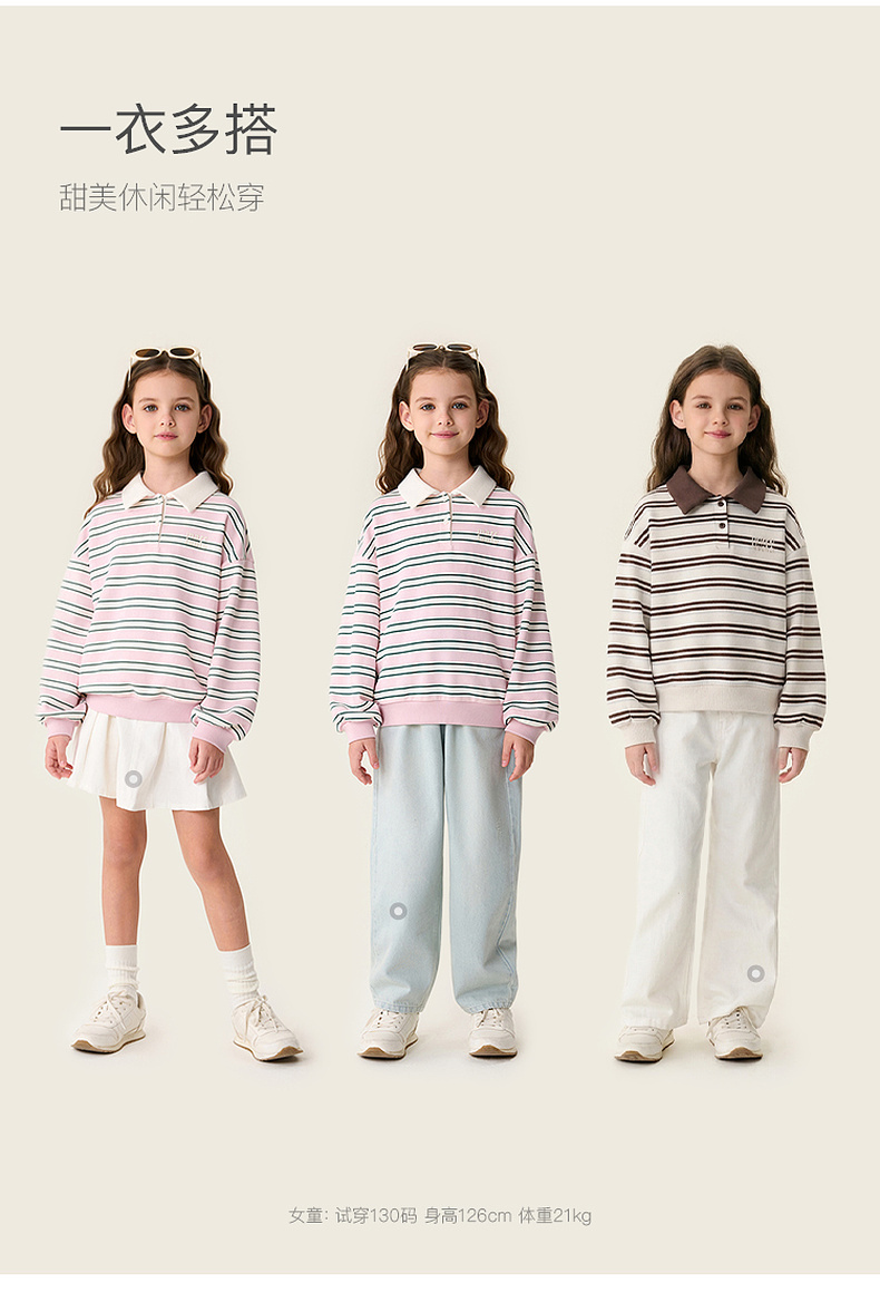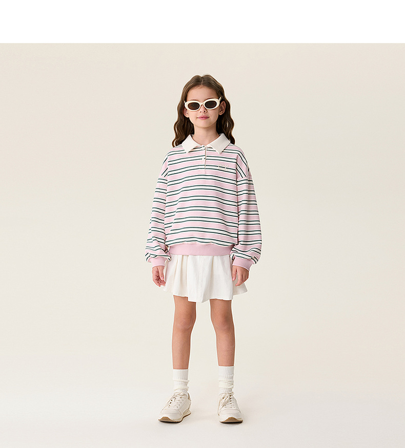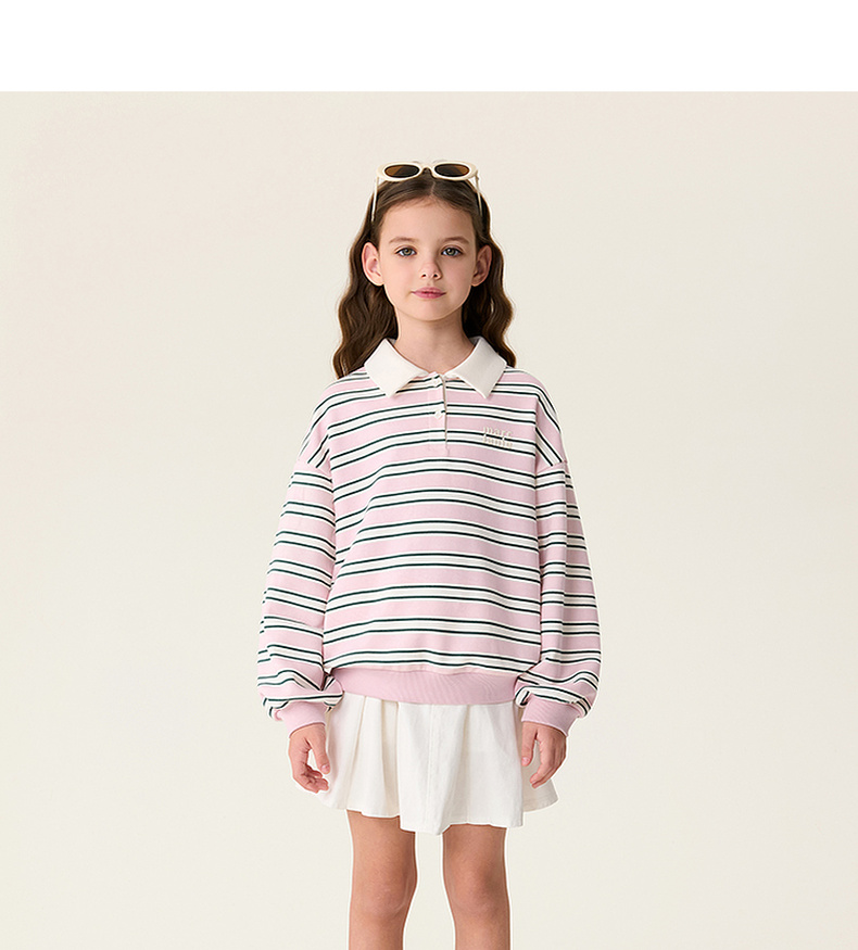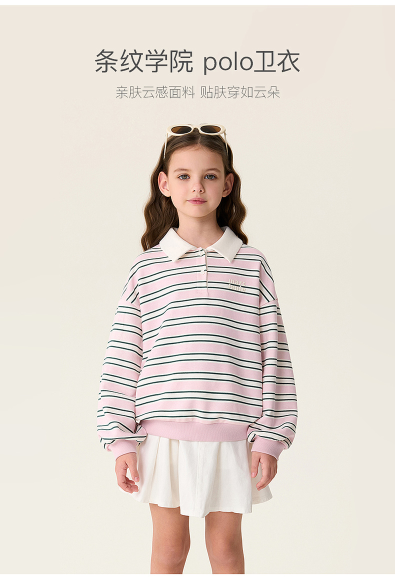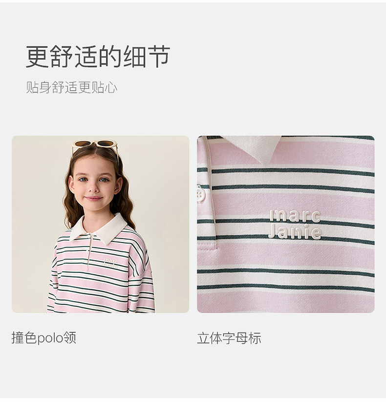 马克珍妮条纹学院女童Miu系POLO卫衣2026年春装新款560181