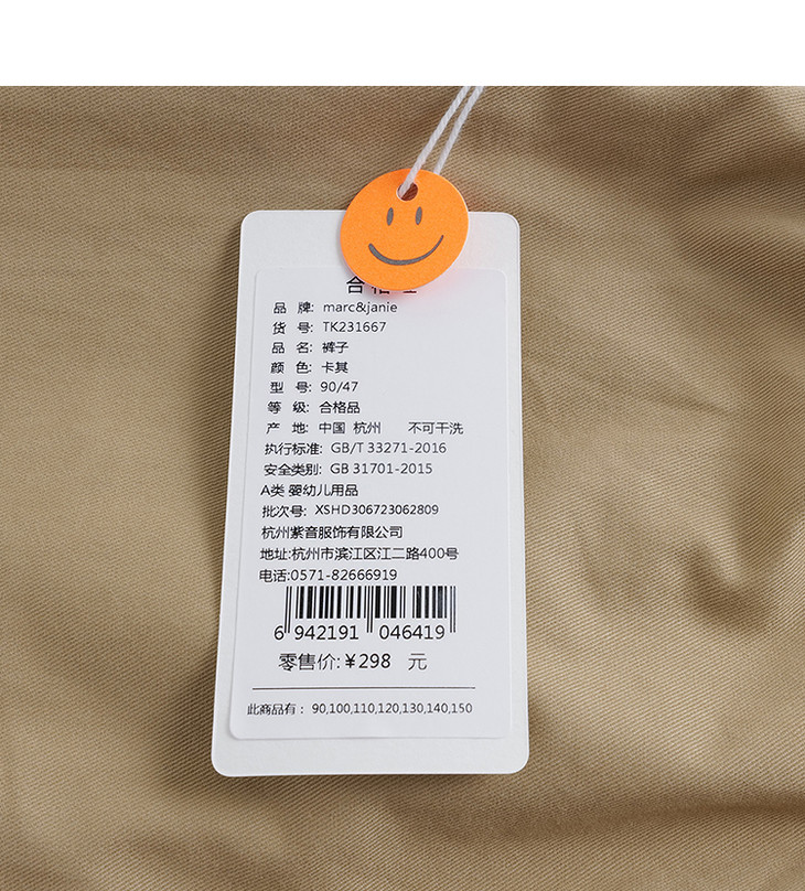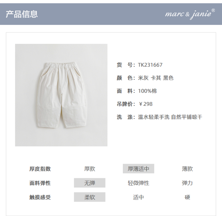 马克珍妮秋装新款 男童柔软纯棉工装萝卜裤 儿童裤子231667
