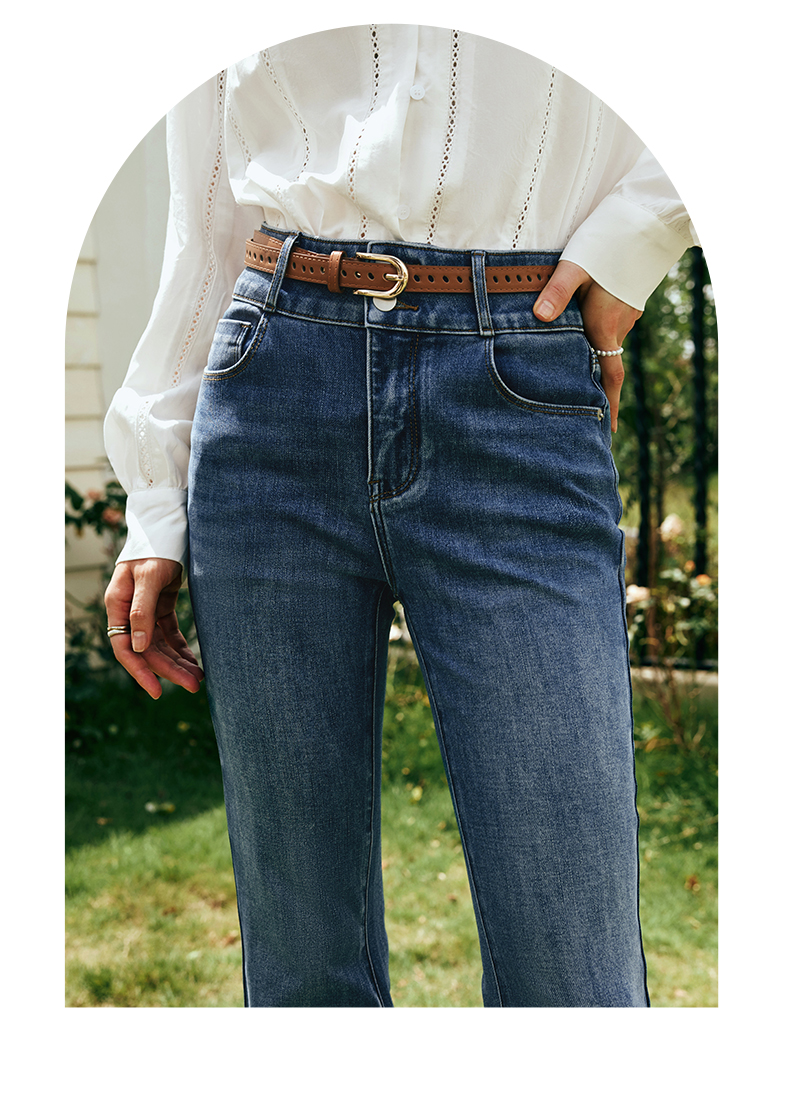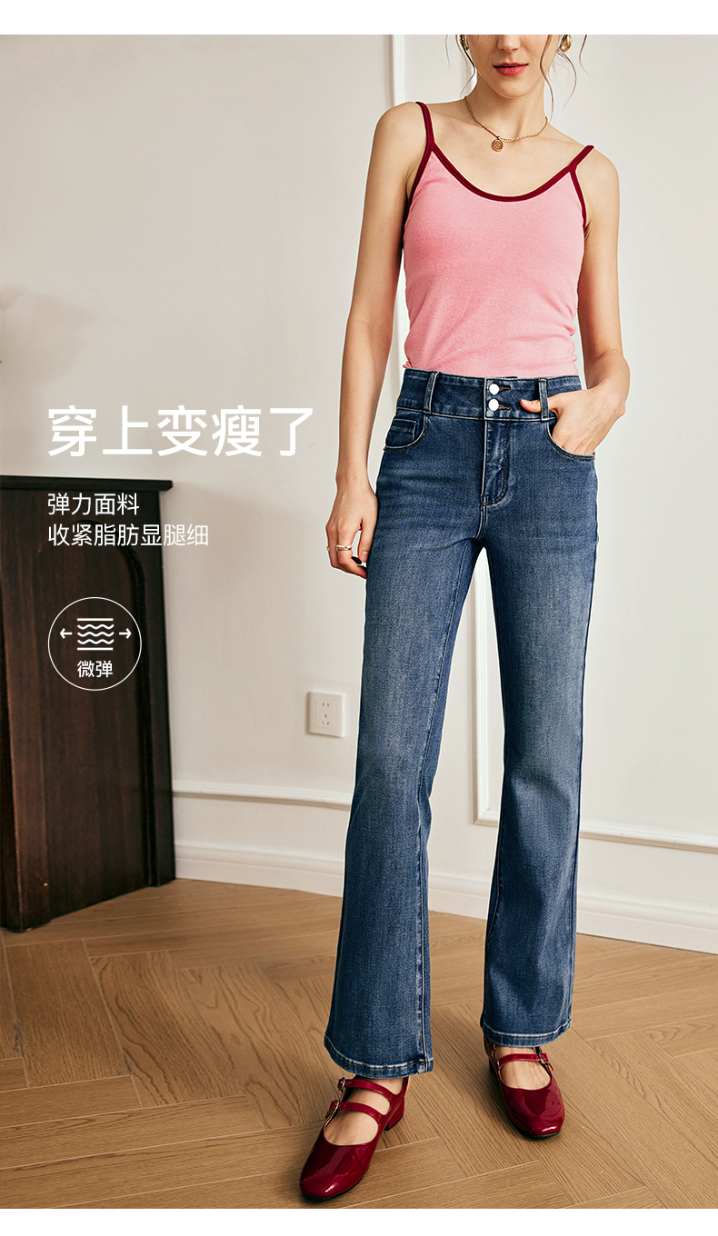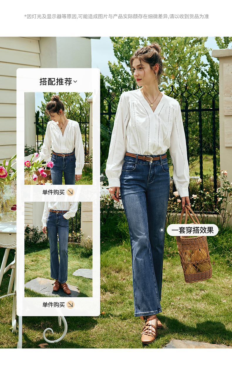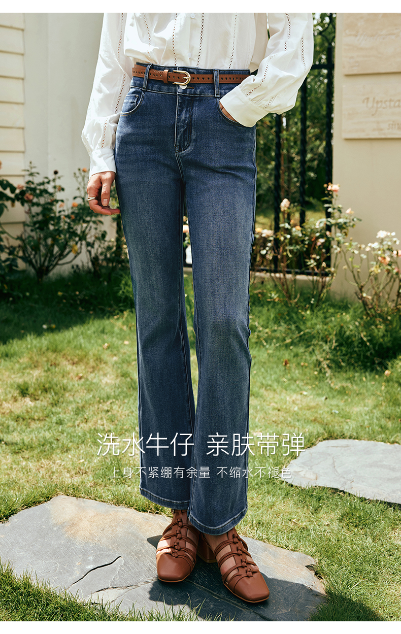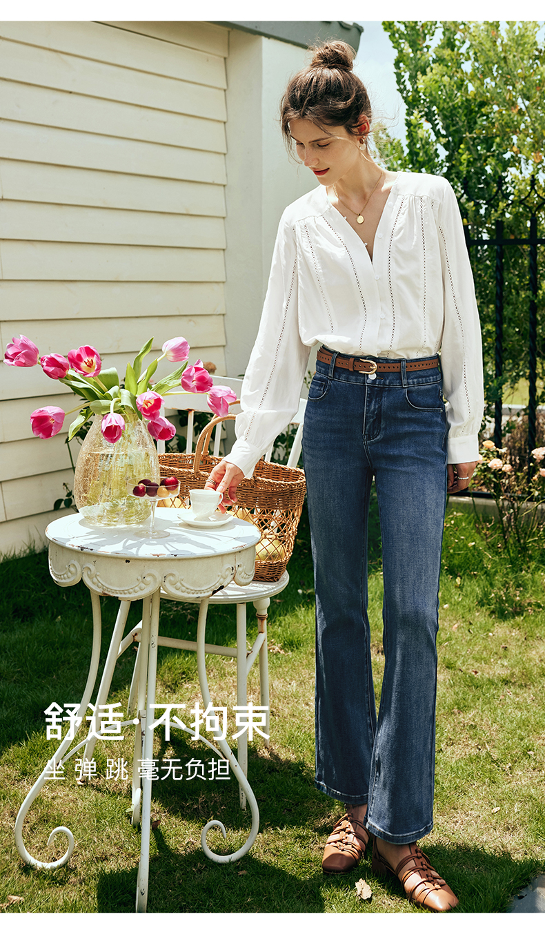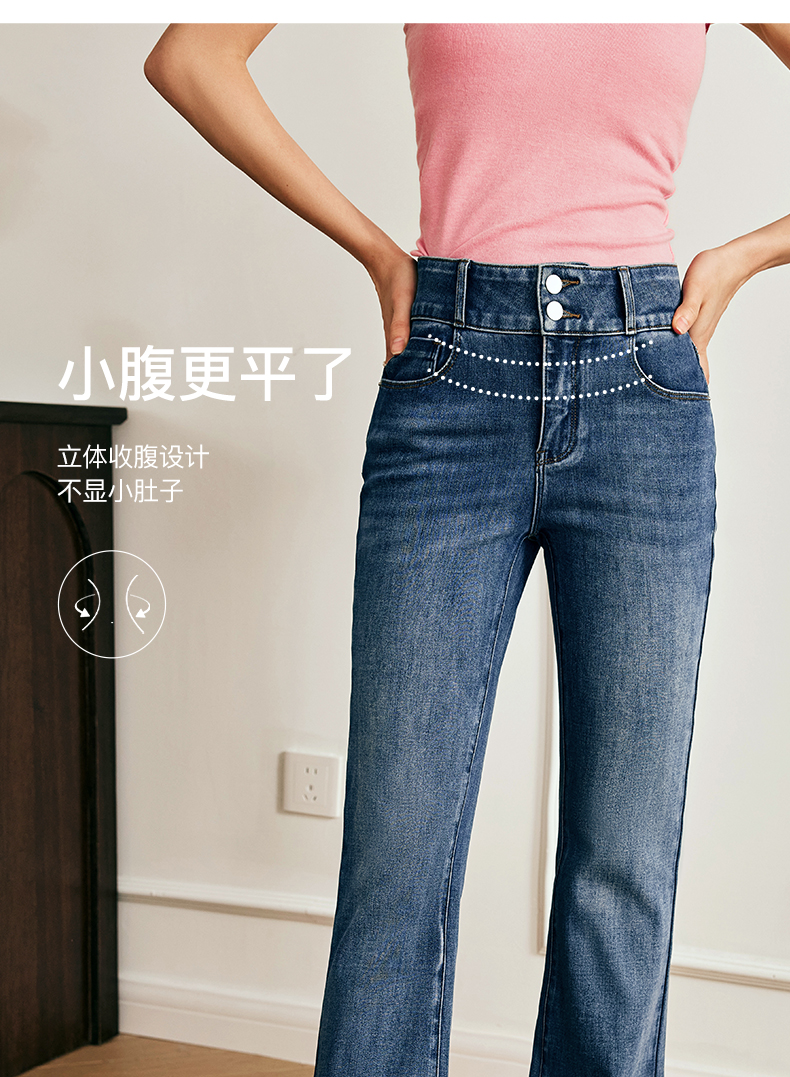 OLrain欧芮儿法式直筒牛仔裤女夏季2023新款高腰弹力阔腿显瘦长裤