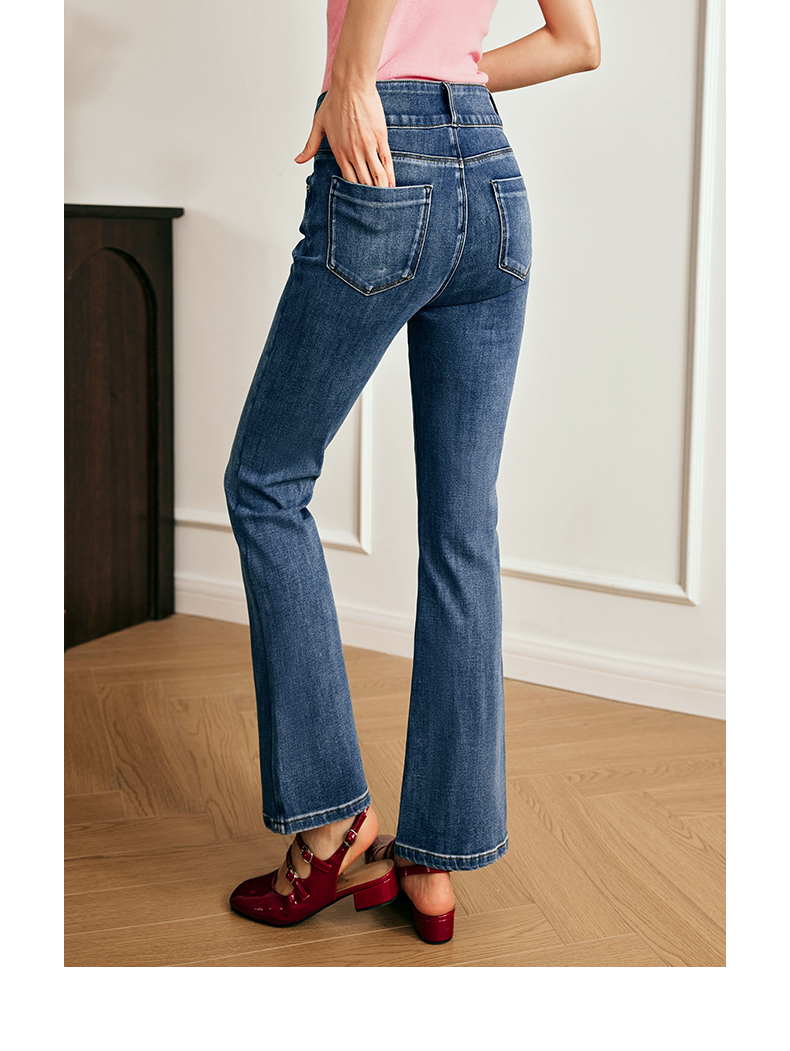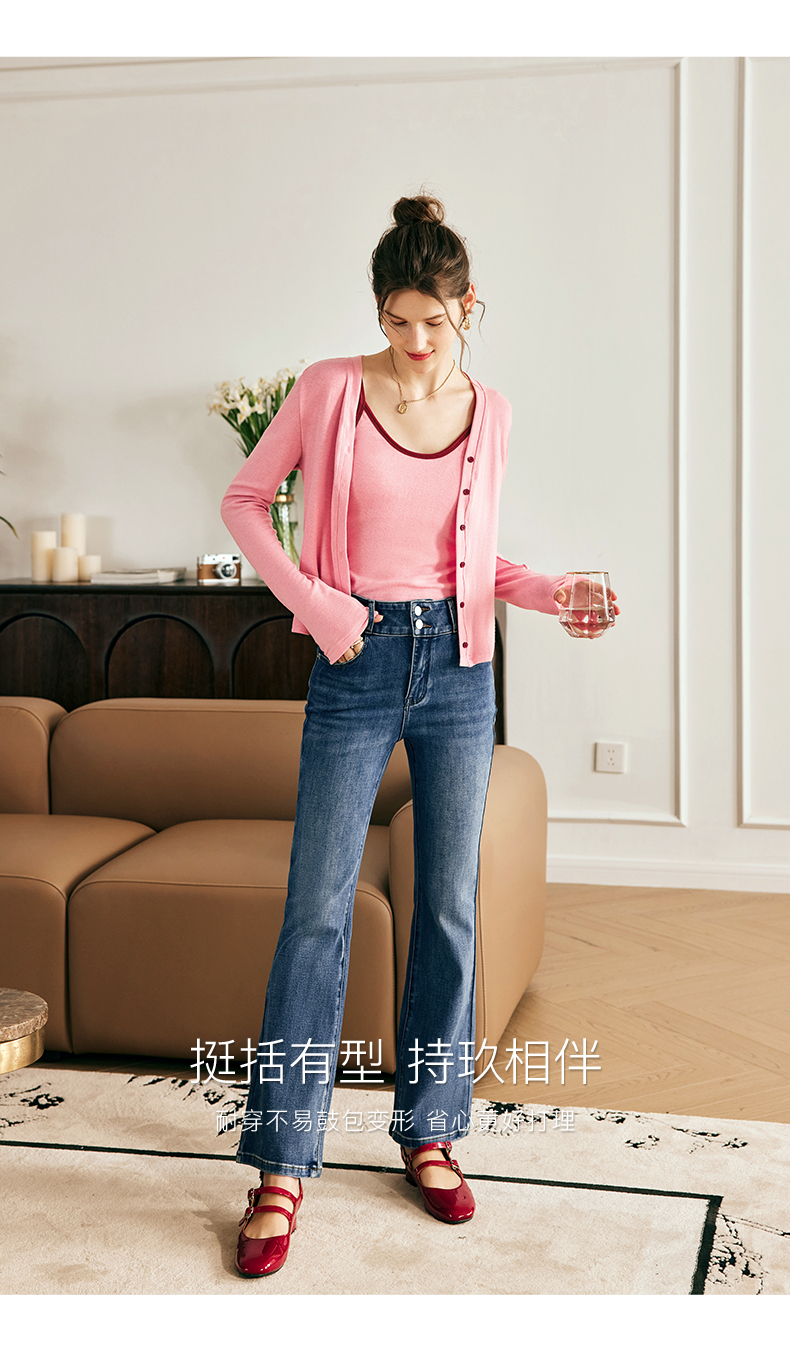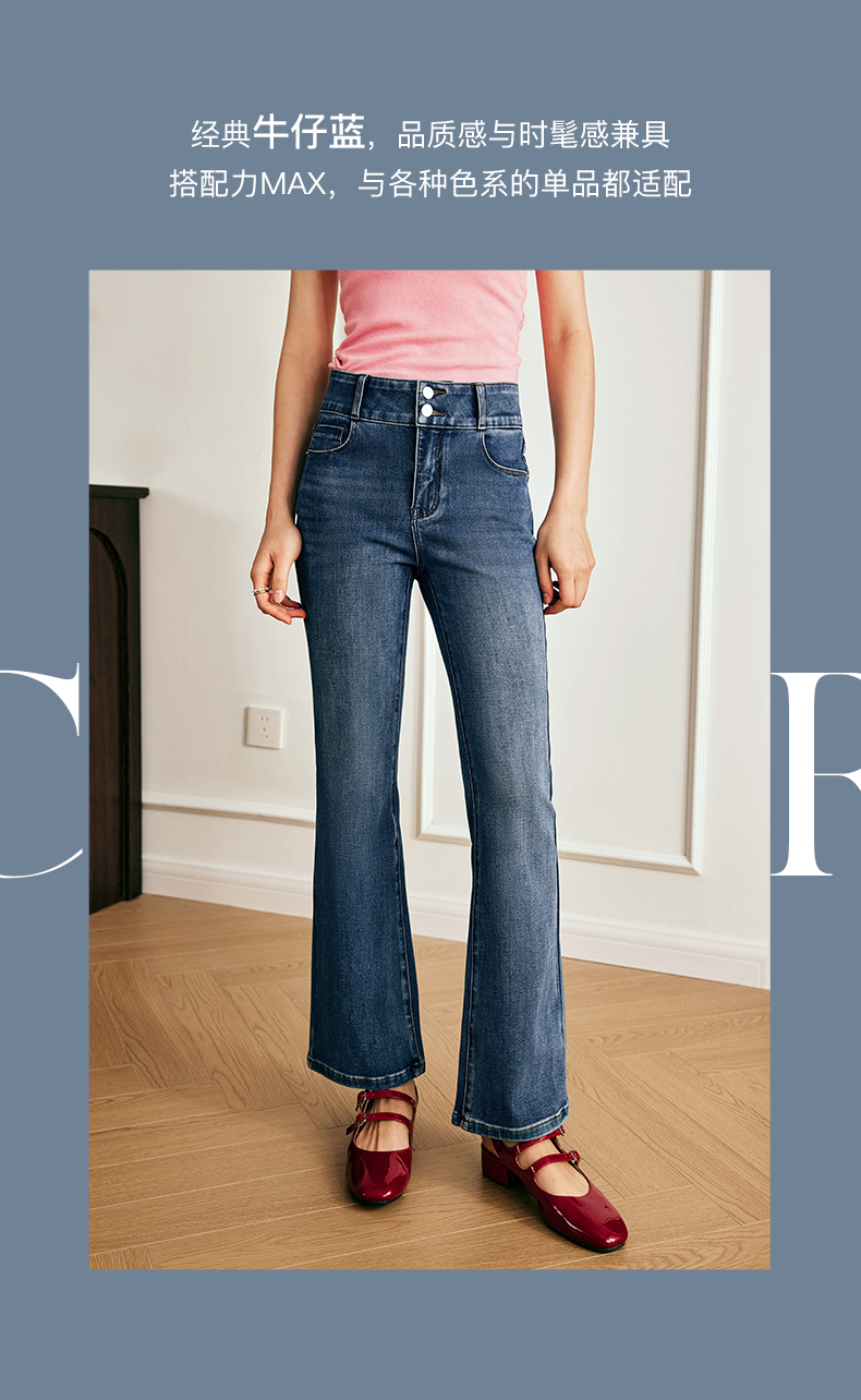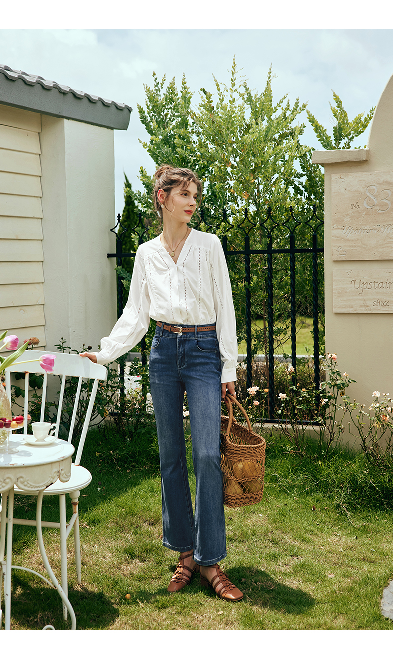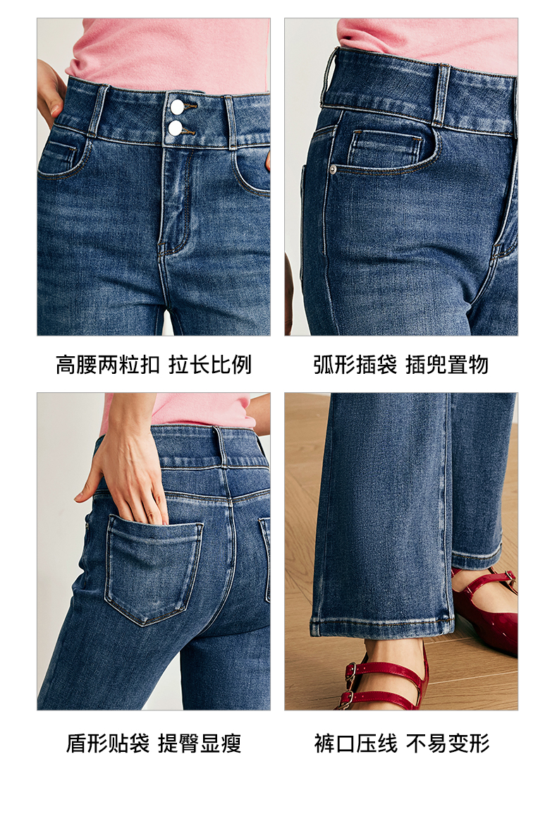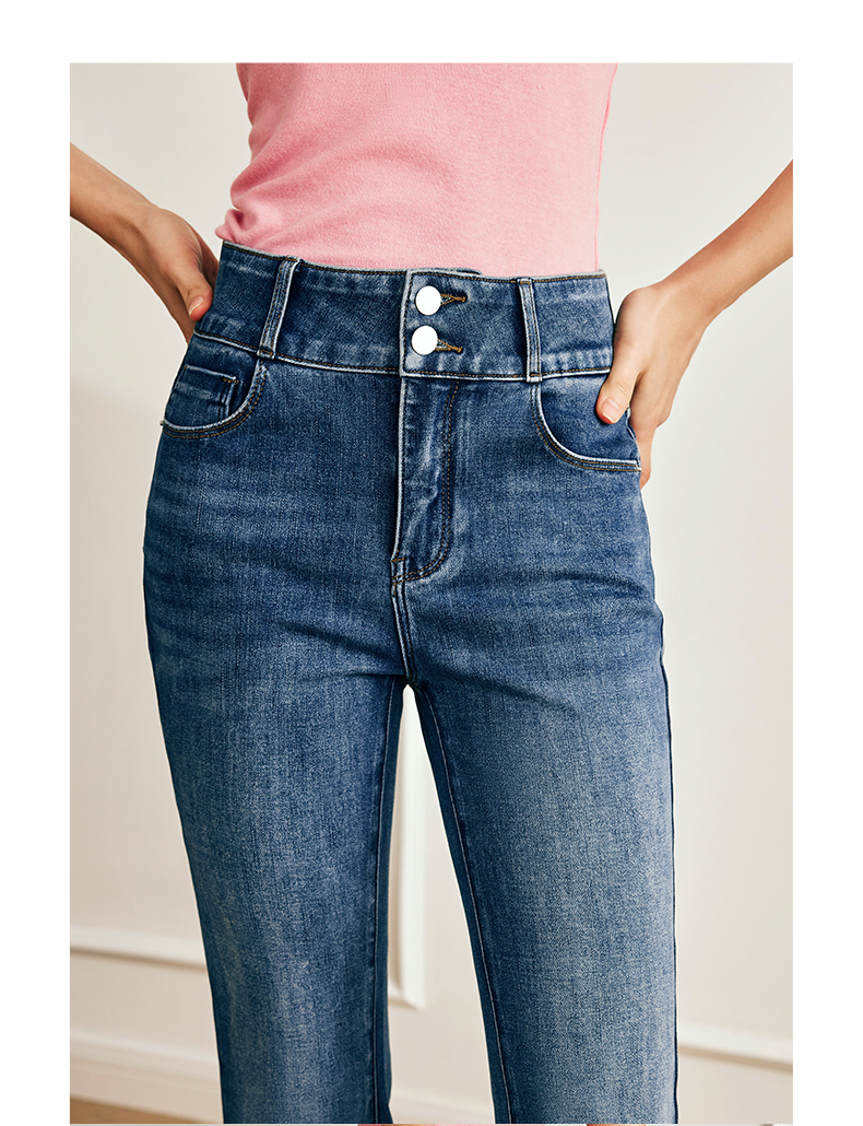 OLrain欧芮儿法式直筒牛仔裤女夏季2023新款高腰弹力阔腿显瘦长裤