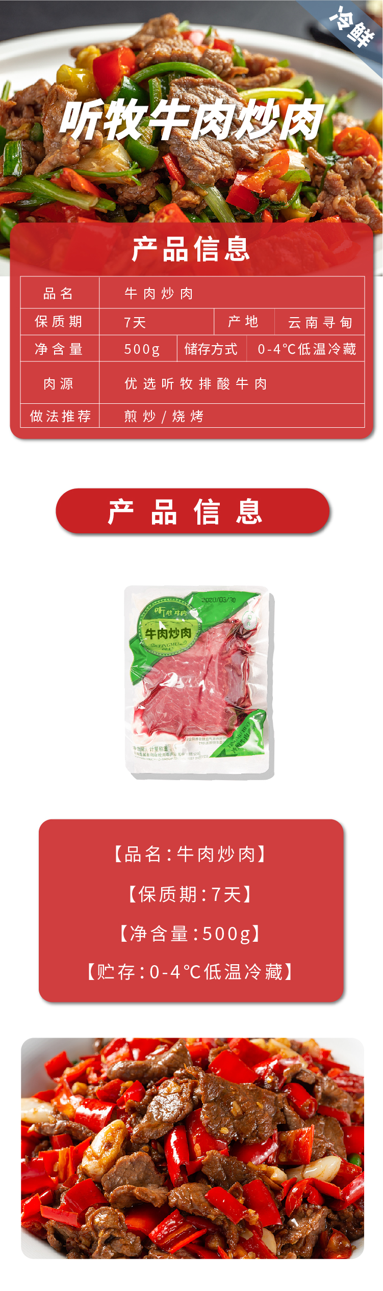 【冷鲜】听牧炒肉 500g/袋
