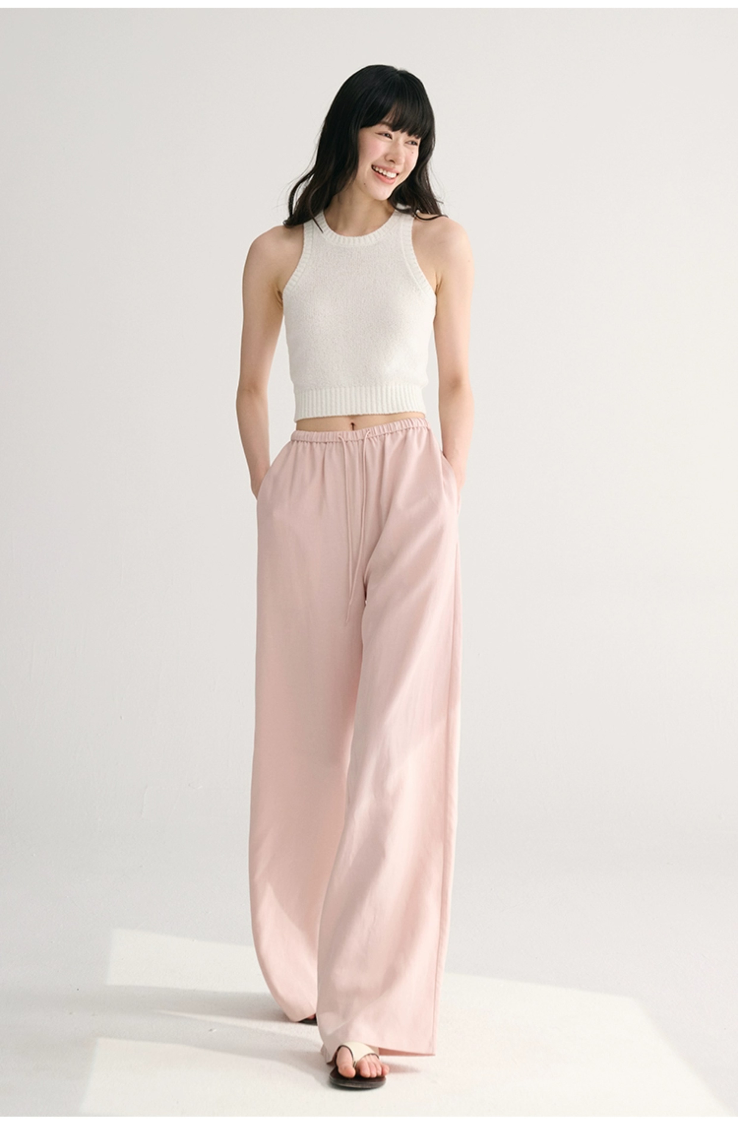 MAISON CECILE 五色/经典天丝亚麻轻薄凉感松紧腰宽松休闲裤