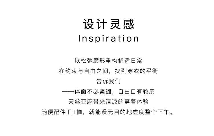 - 用松弛的裁剪与天然的面料,书写简单生活的诗意,让衣物回归「穿着」本身,打造独一无二的个性衣橱。
