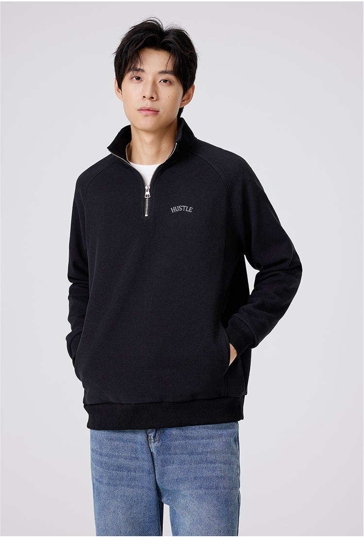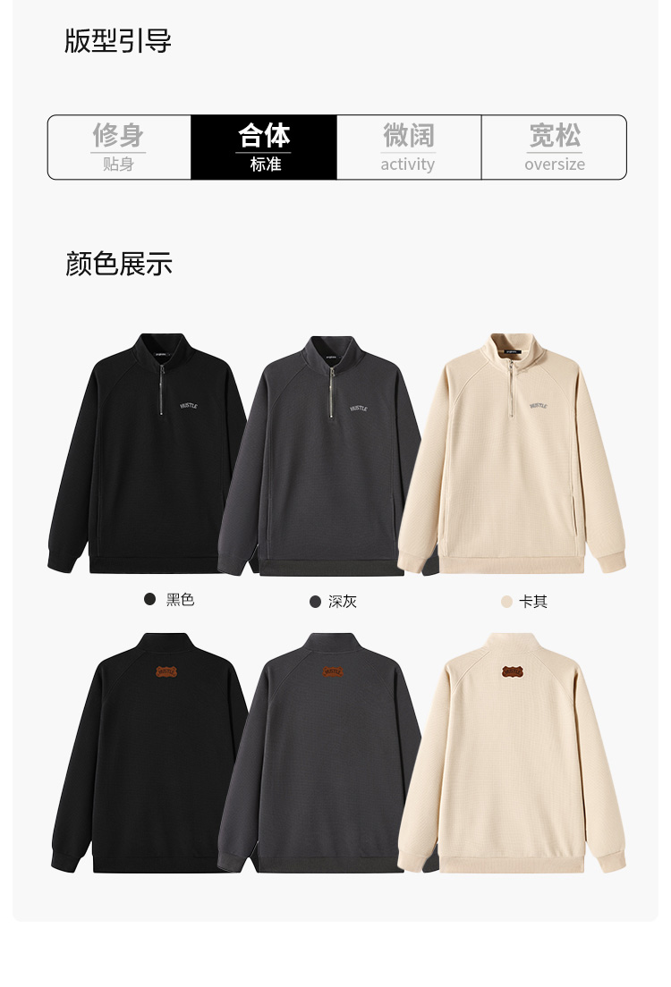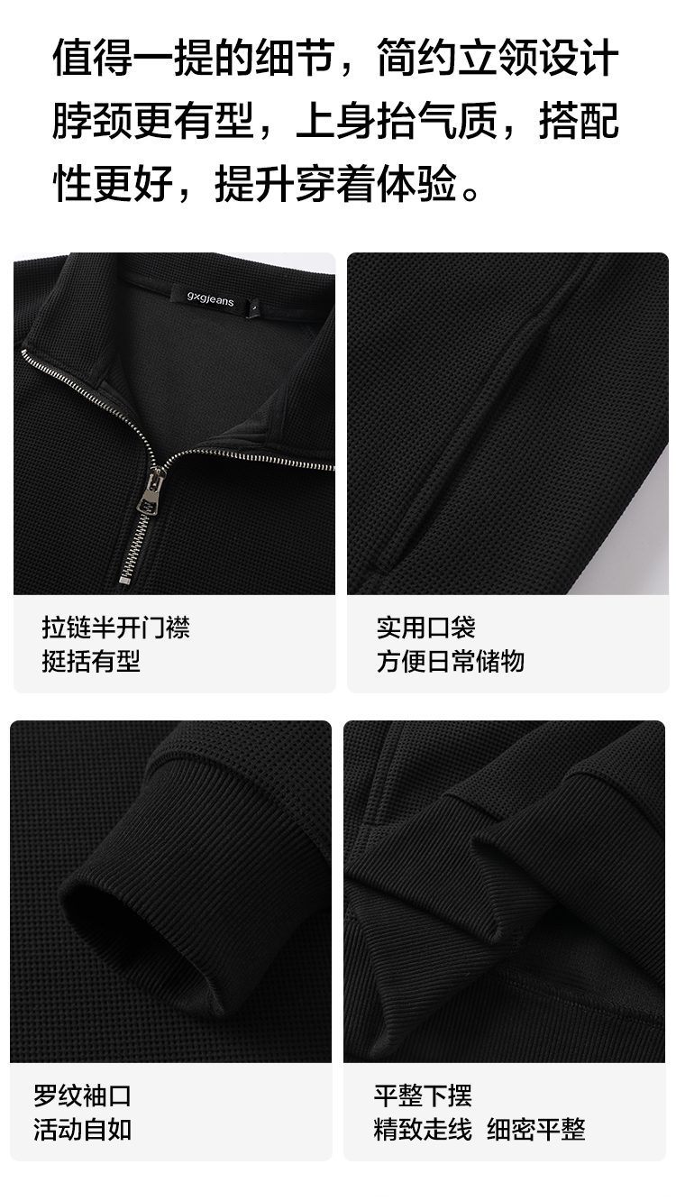 GXG【后背皮牌】男士立领卫衣25秋款简约时尚百搭情侣款套头卫衣K&C