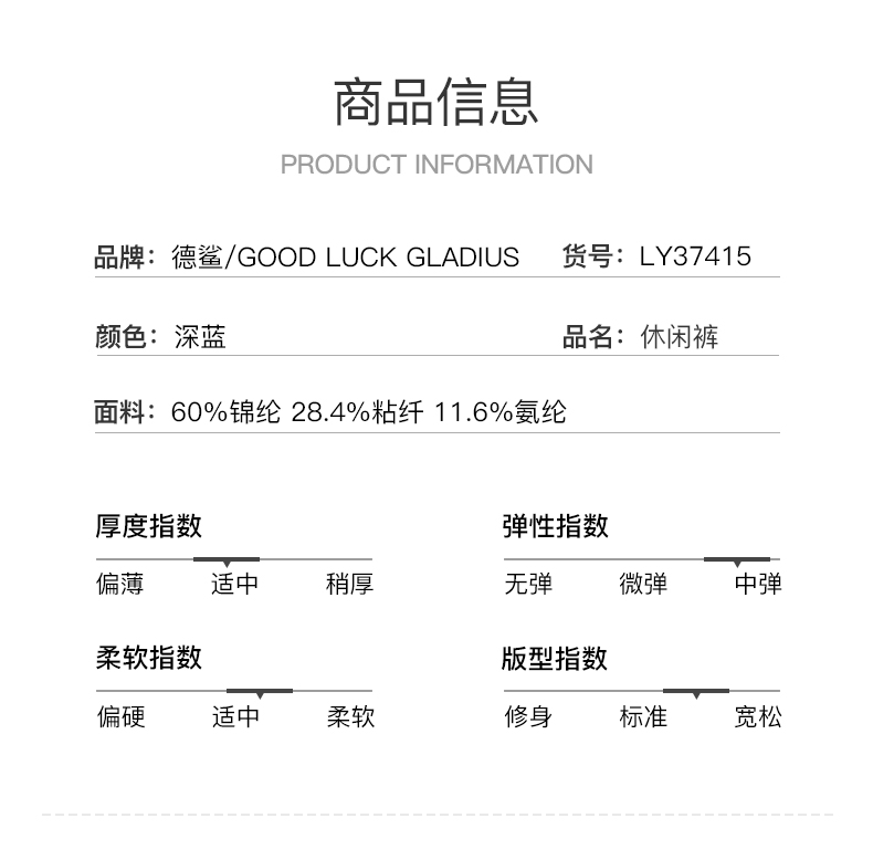 GOOD LUCK GLADIUS品牌由“浙江德鲨服饰有限公司”引进中国市场,经过多年发展,凭借完善的终端形象,规范化的销售管理,迅速赢得消费者的认可,引领国内消费流行,是成功人士首选男装品牌。