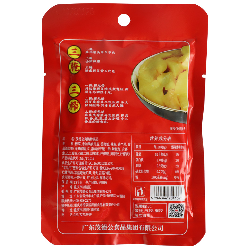 茂德公清爽榨菜芯鲜脆菜芯80g*5袋/10袋/20袋酱菜泡菜下饭菜咸菜小菜早餐配粥