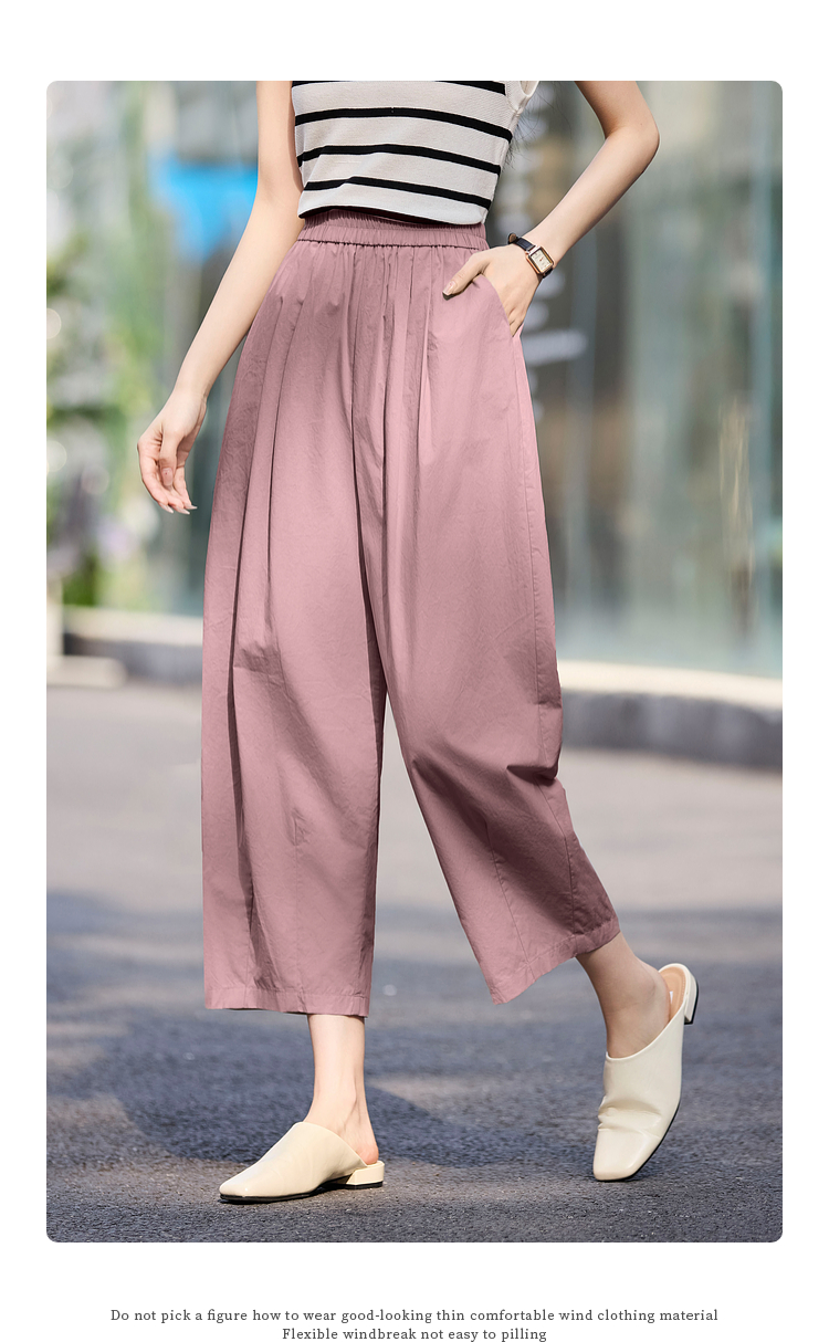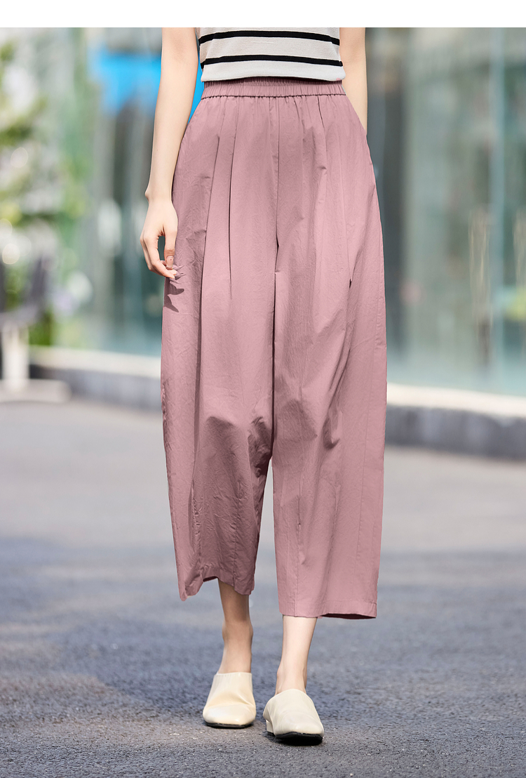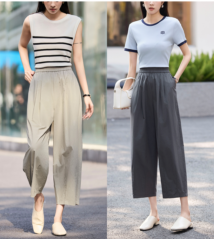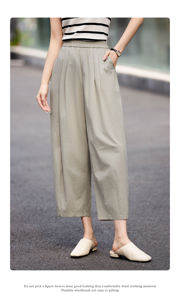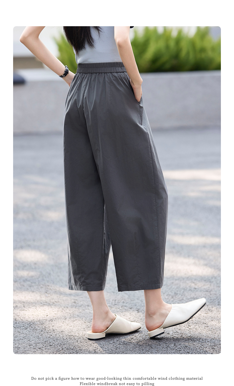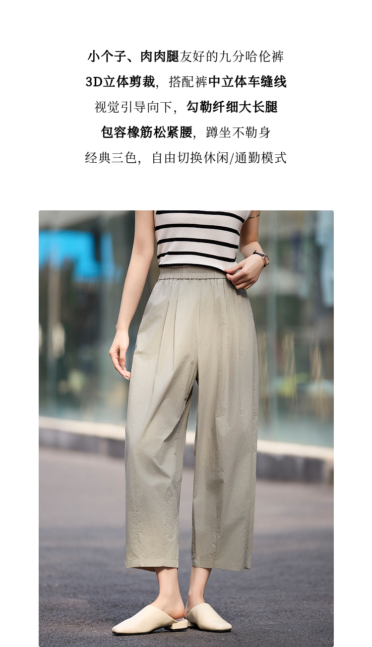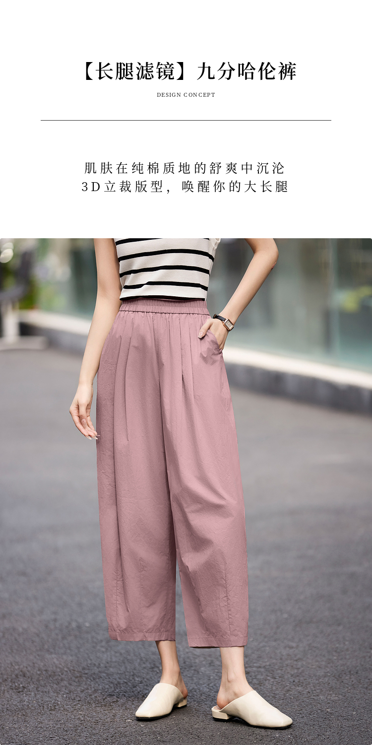 熙世界100%长绒棉休闲裤女夏季薄款裤子2025新款松紧腰镰刀哈伦裤