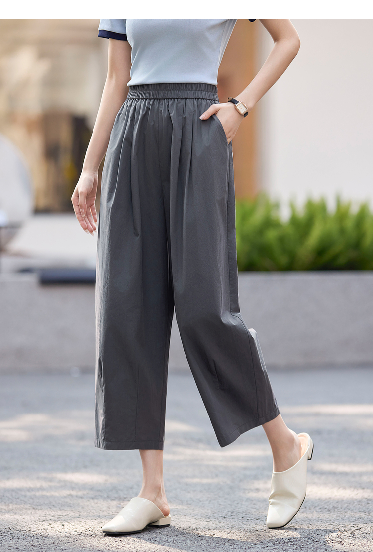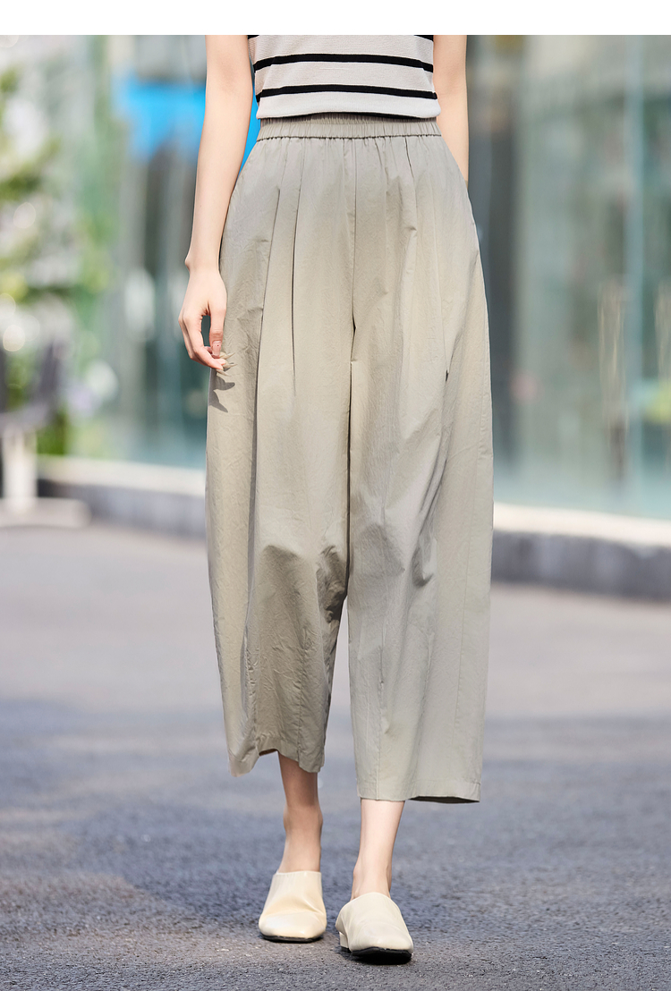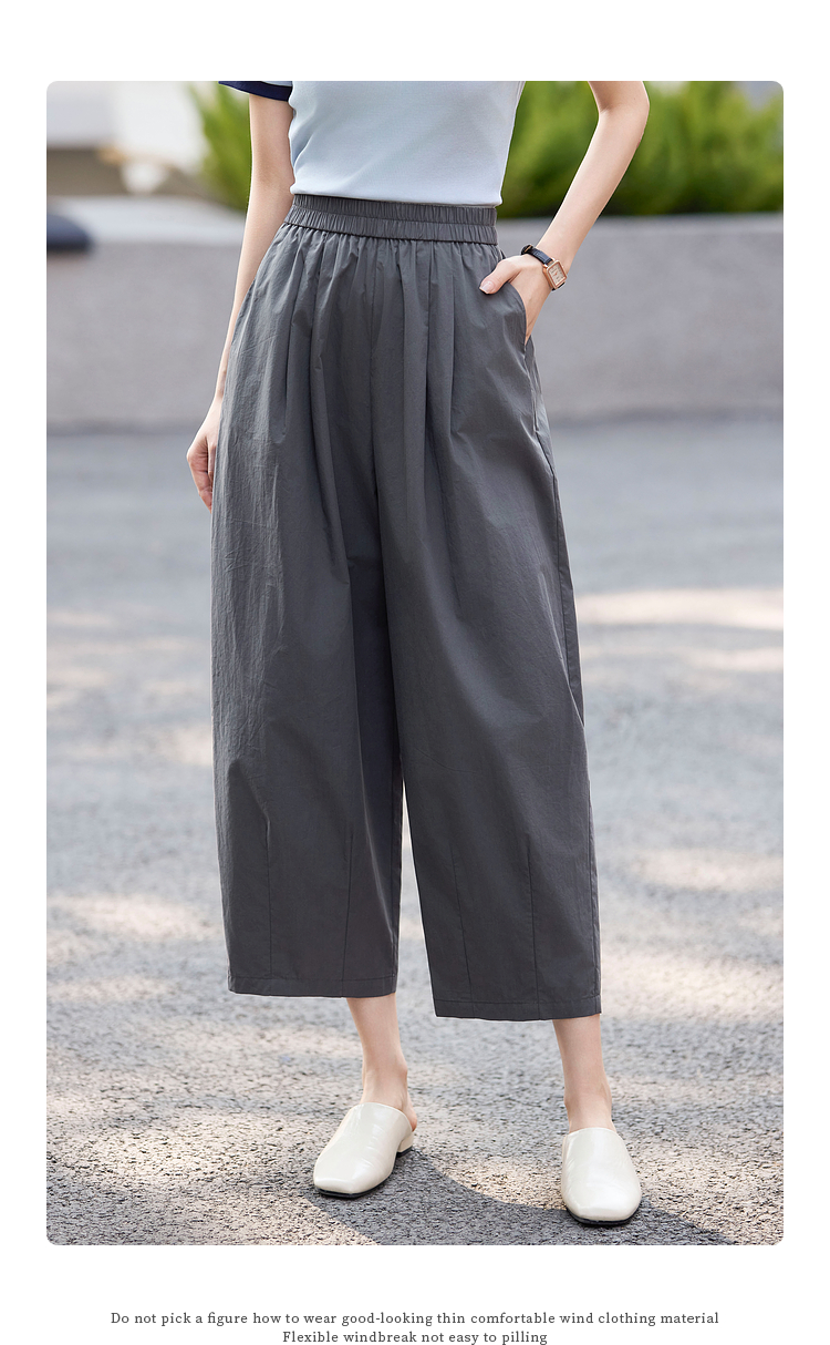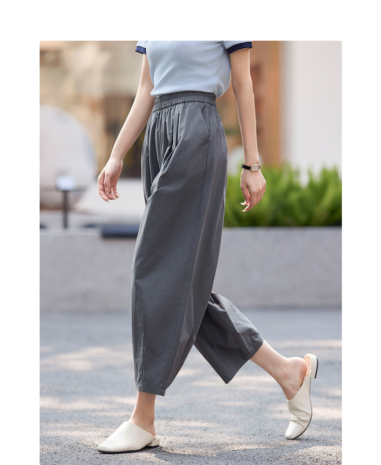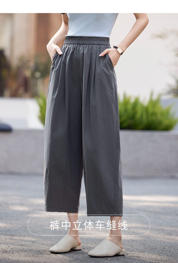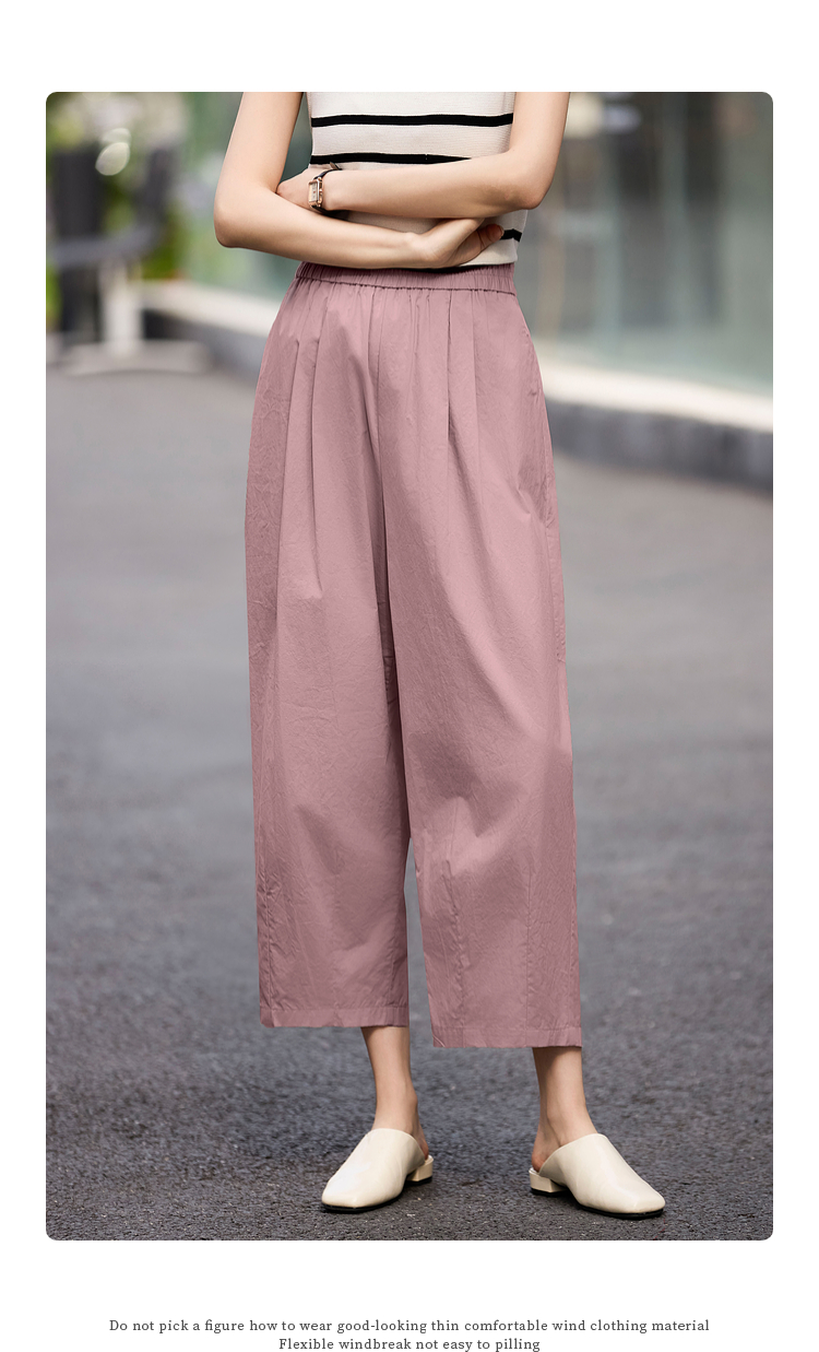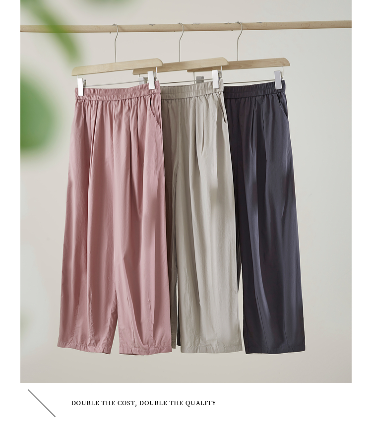 熙世界100%长绒棉休闲裤女夏季薄款裤子2025新款松紧腰镰刀哈伦裤