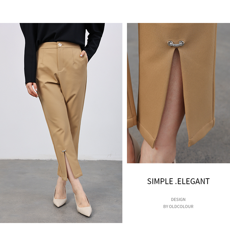 oldcolour2022秋商场同款高级感宽松遮肉开叉休闲九分裤O31073356