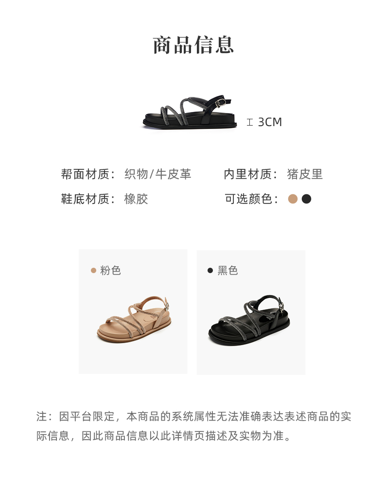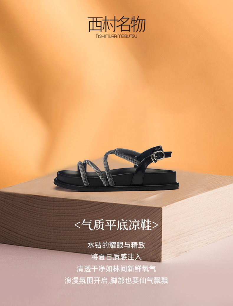 西村名物2023夏季新款气质水钻法式平底通勤百搭爆款时尚女款凉鞋23201