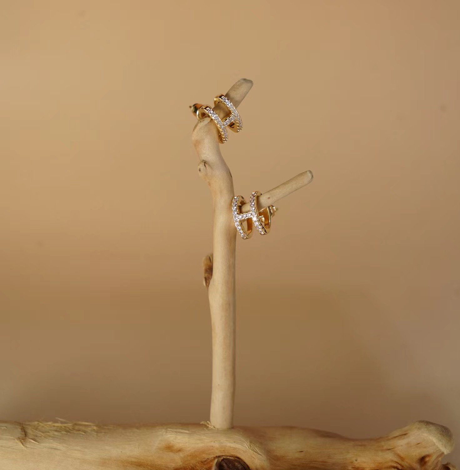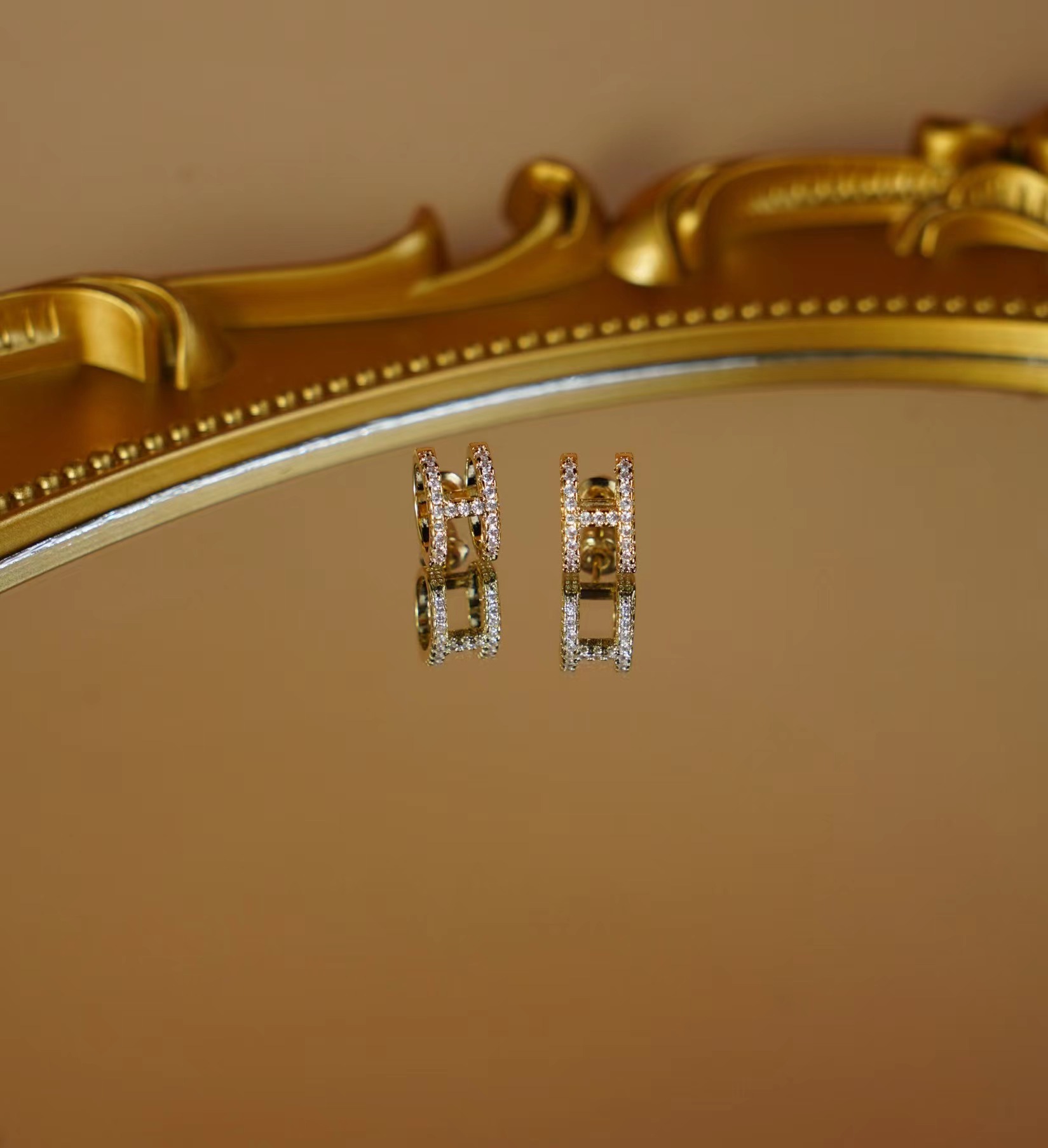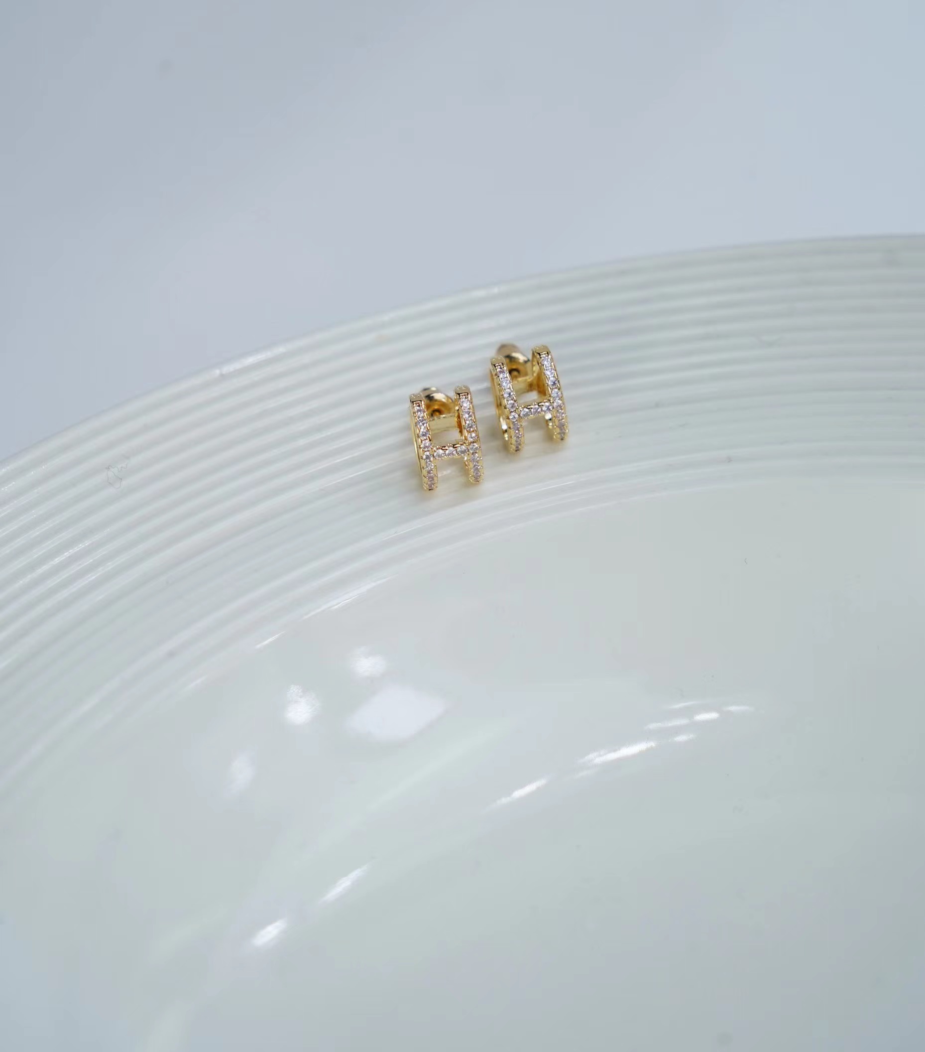 L字母H镶钻耳钉