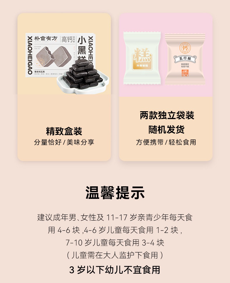 小黑糕 其中富含、高钙高蛋白,营养丰富可代餐。富含丰富的营养成分~ 长期食用,能有效补气益肾,光滑皮肤,改善睡眠质量~,108g/盒,包邮到家!