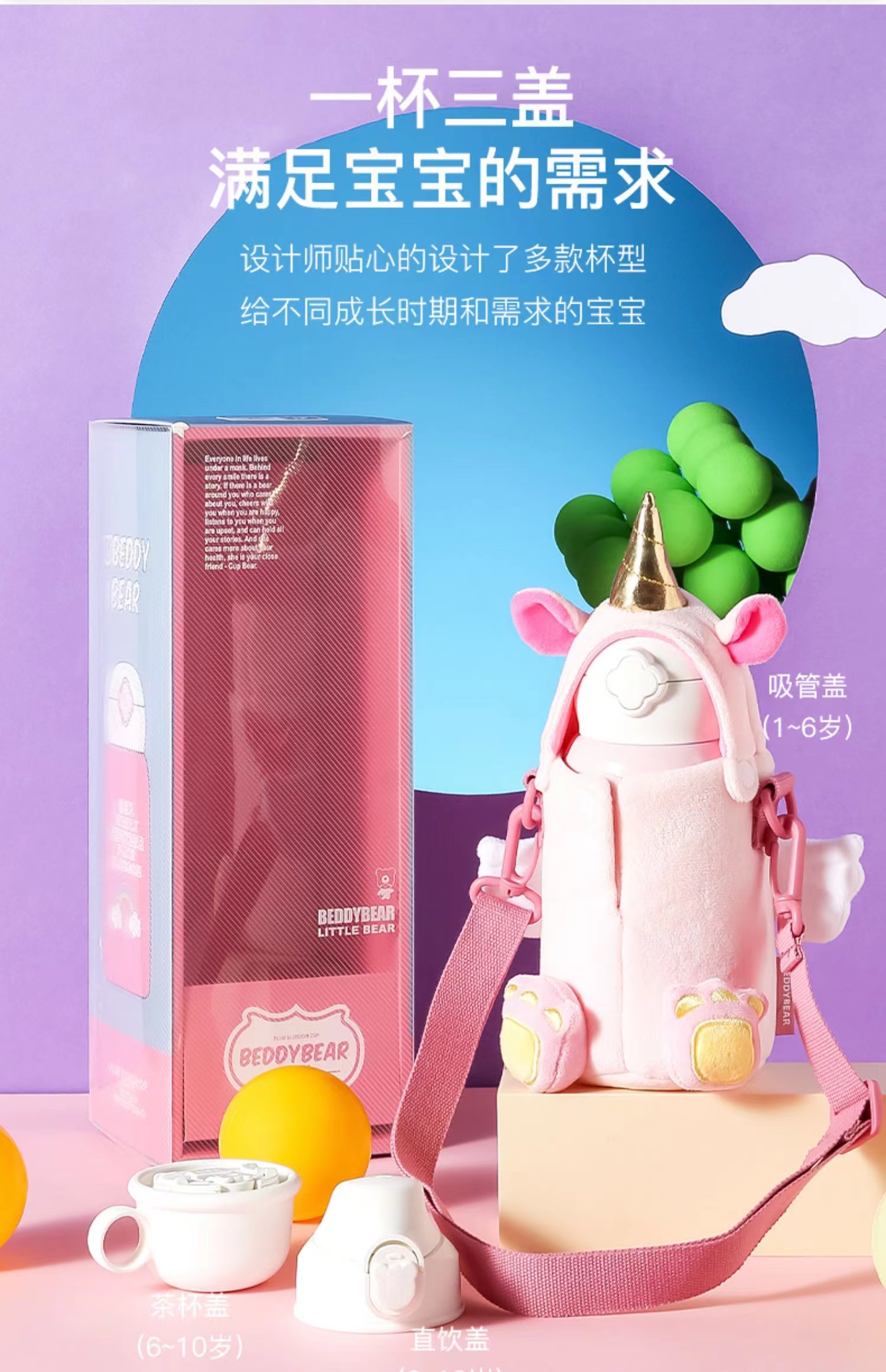 杯具熊四叶草儿童保温壶毛绒保温杯