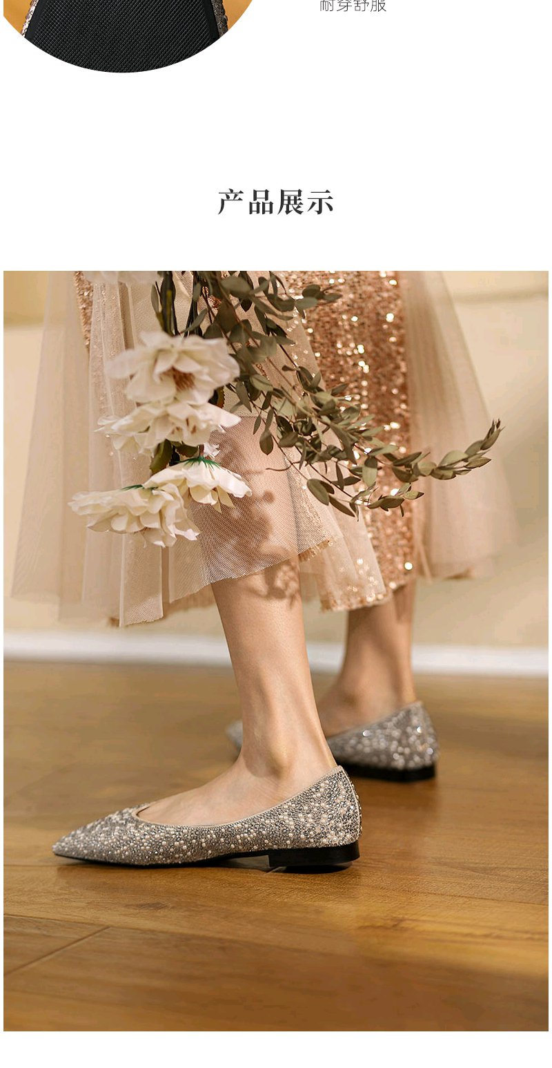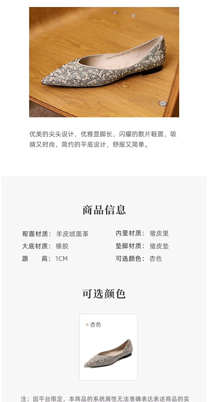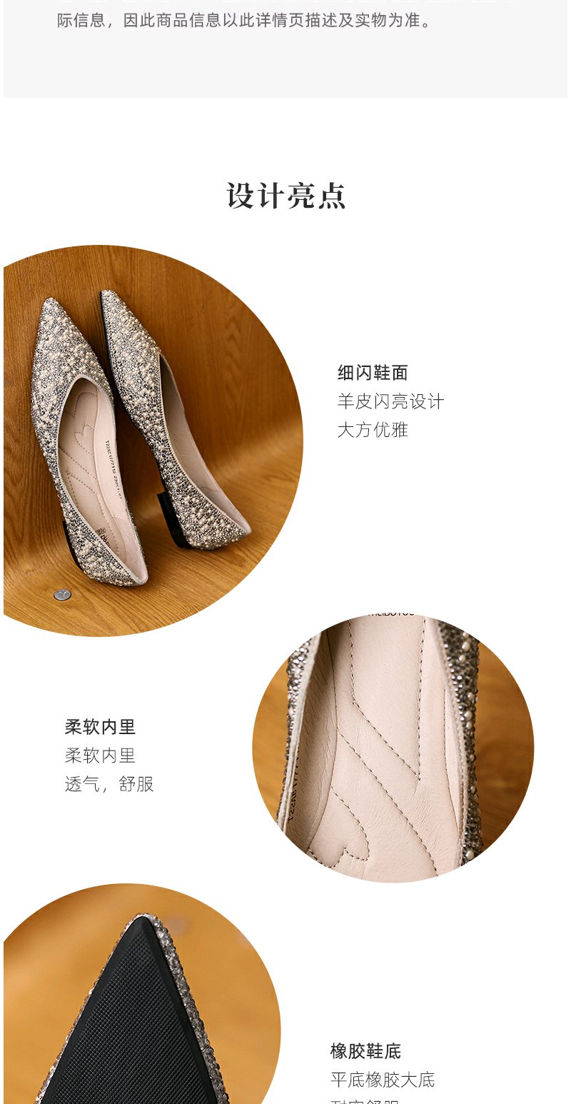 西村名物婚鞋2022春季新款气质钻面婚鞋平底单鞋女宴会浅口T22AE17771