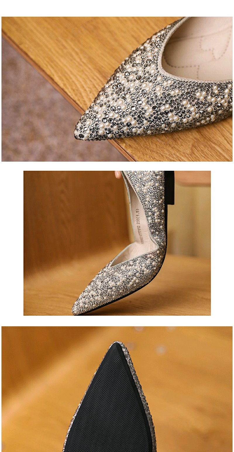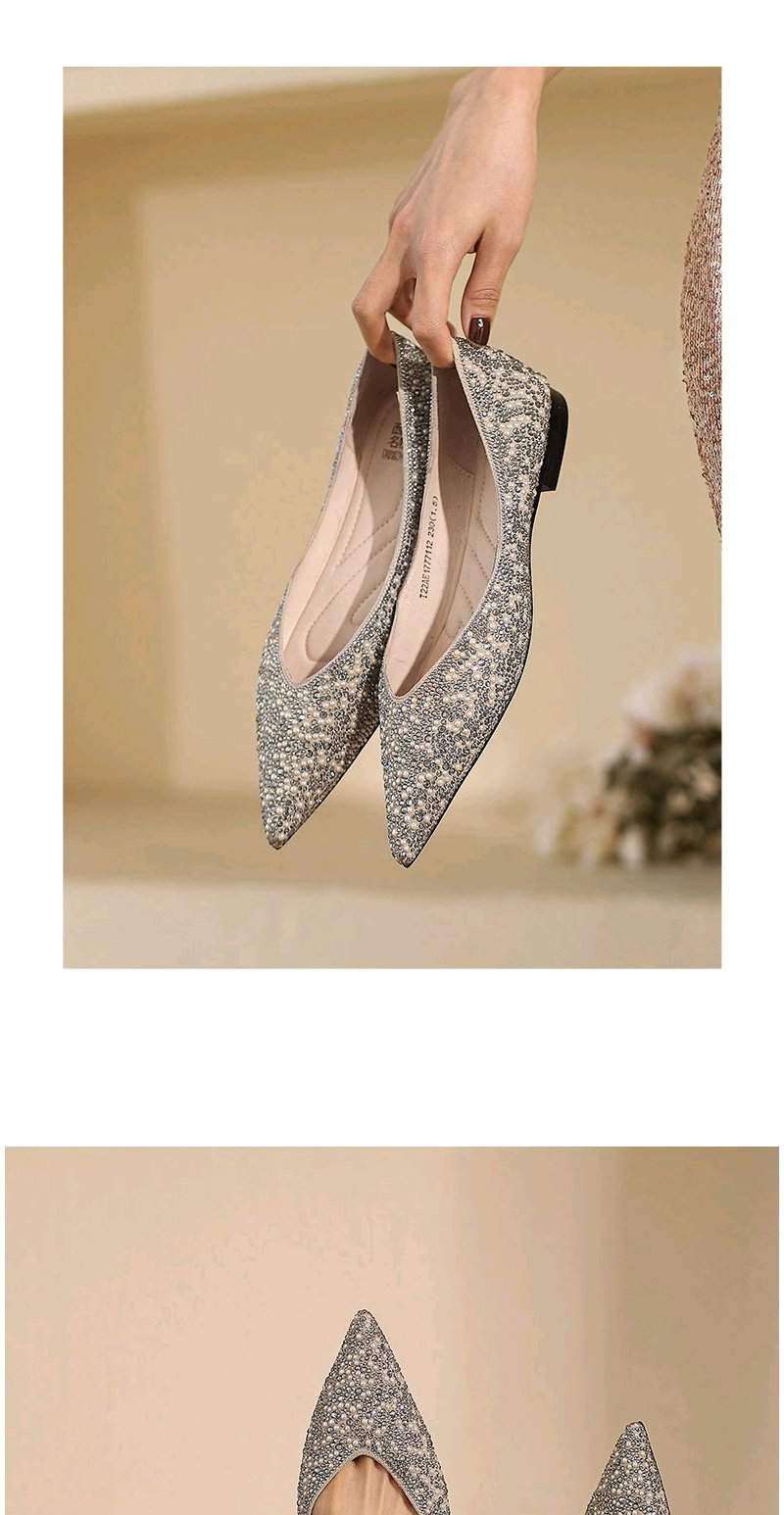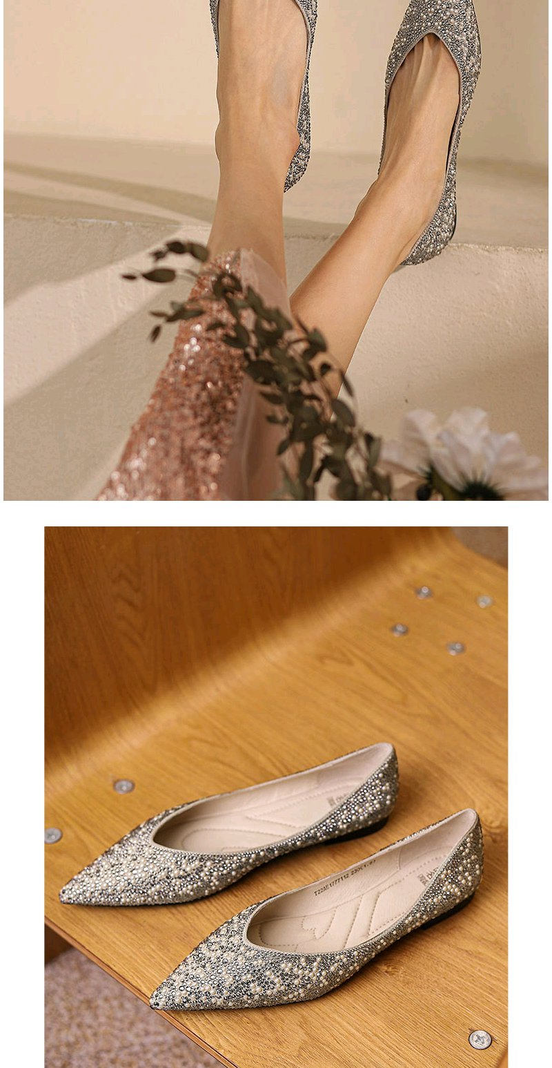 西村名物婚鞋2022春季新款气质钻面婚鞋平底单鞋女宴会浅口T22AE17771