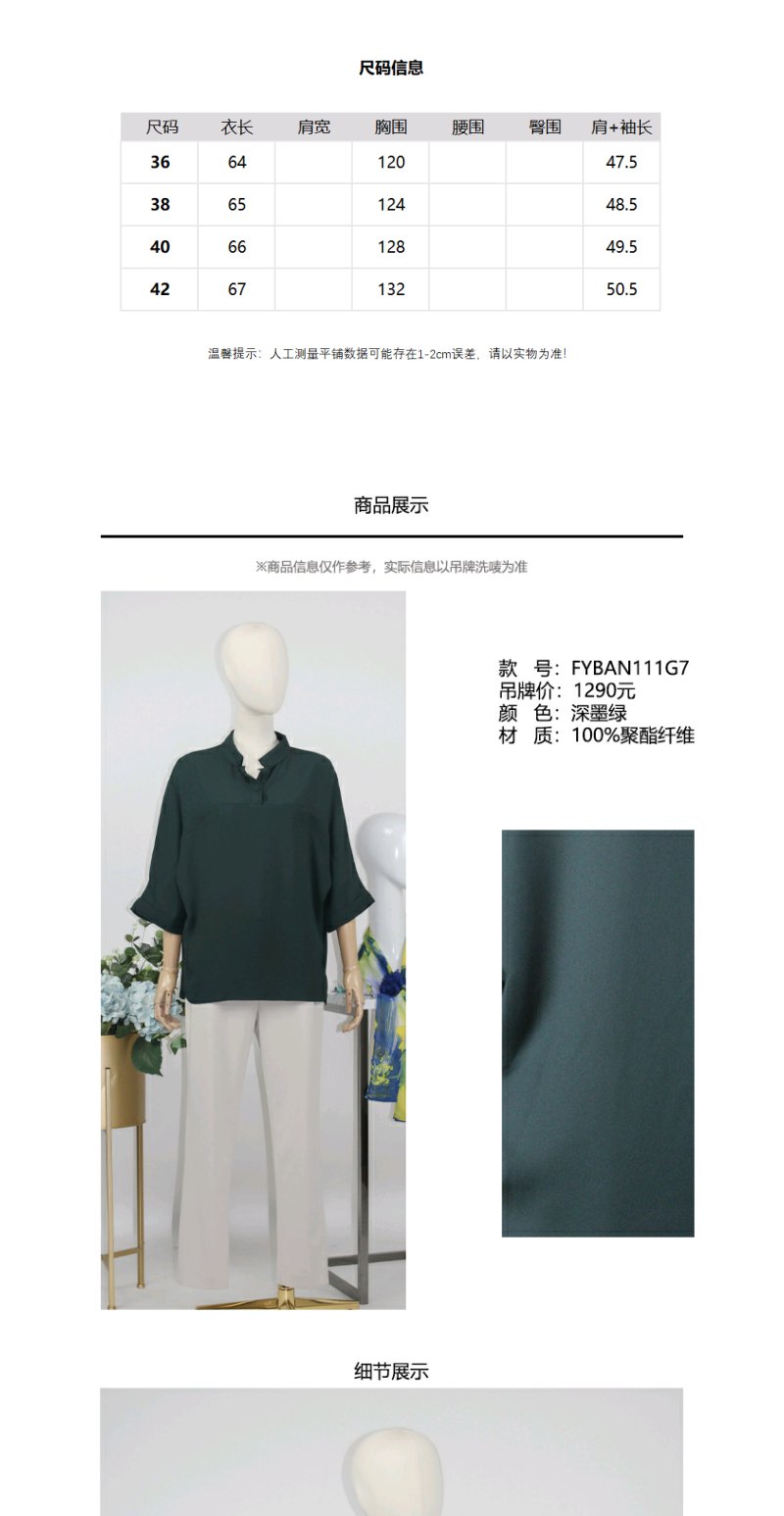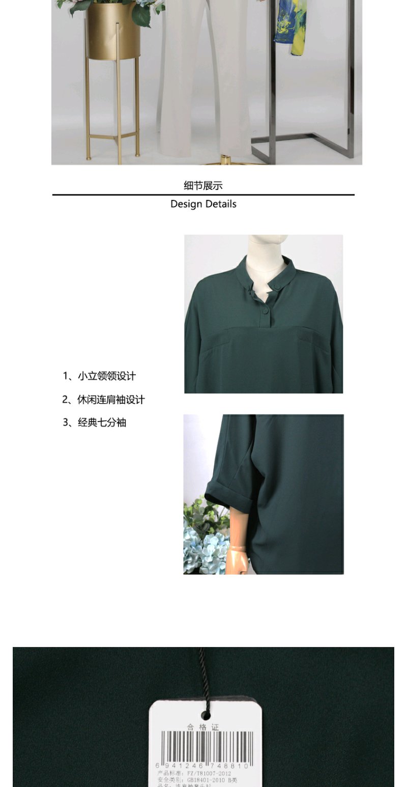 FOCALS福柯斯女装春秋新款宽松七分袖上衣蝙蝠袖衬衫FYBAN111G7