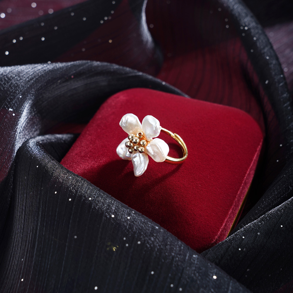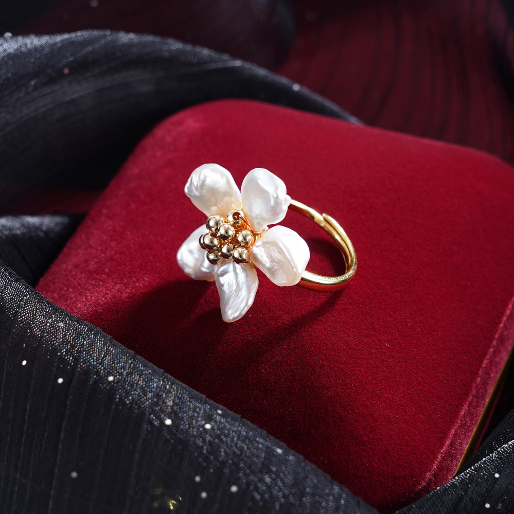 子佩集【桃之夭夭】银S925珍珠惜王妃戒指【QJJZ002】五瓣花巴洛克2602
