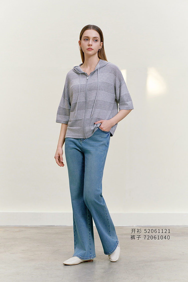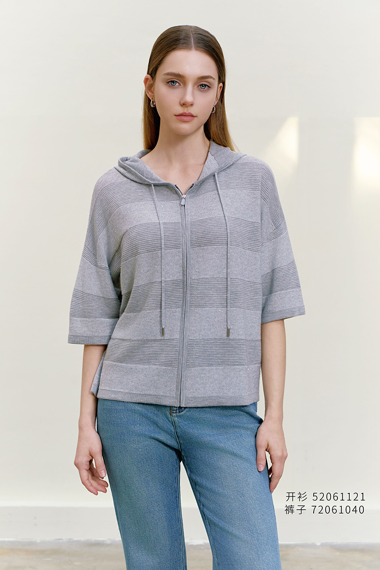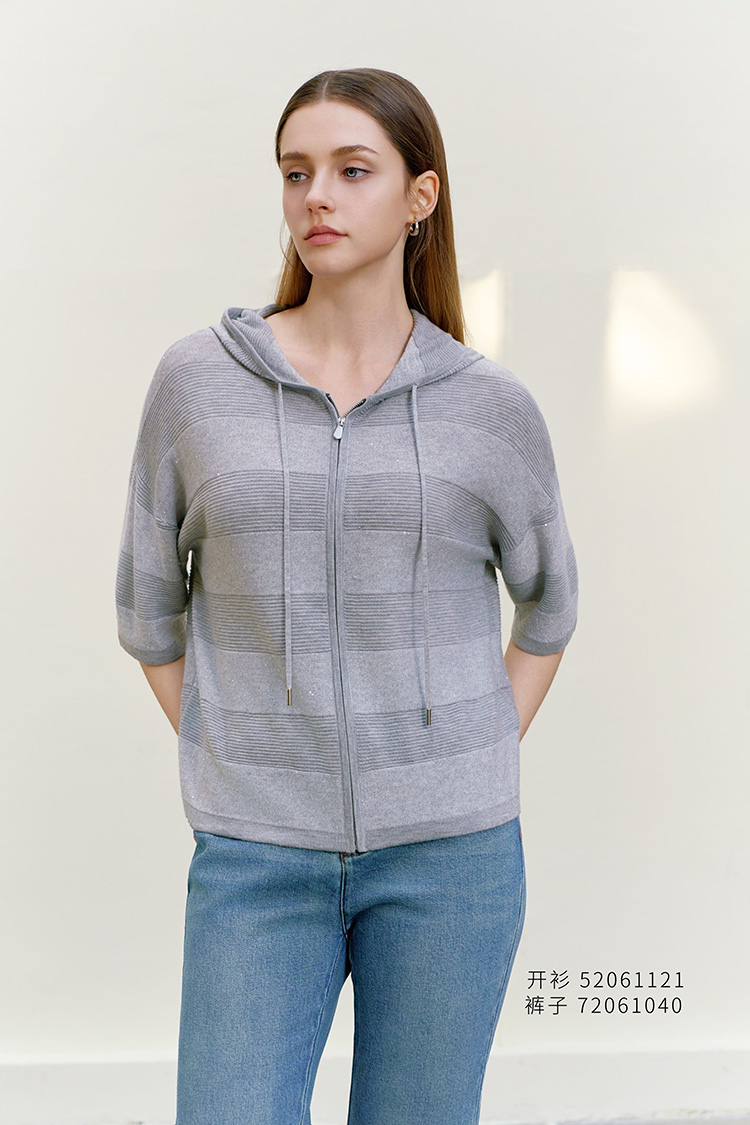 【连帽短袖针织条纹开衫】26年春夏新品女士条纹莱赛尔纤维外套