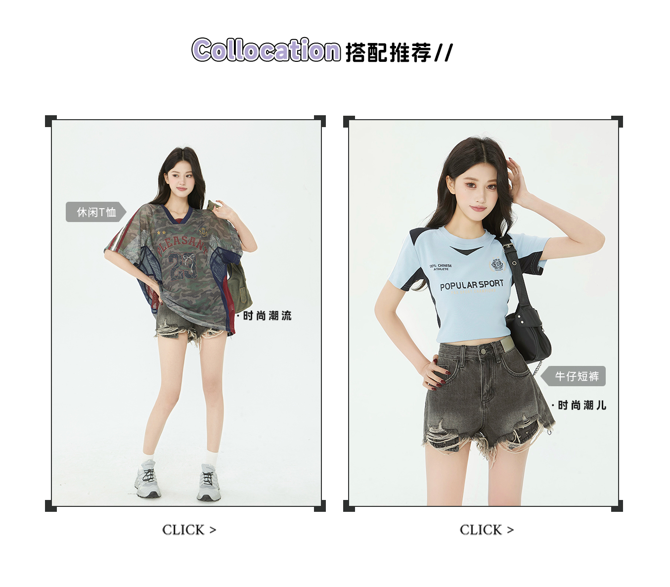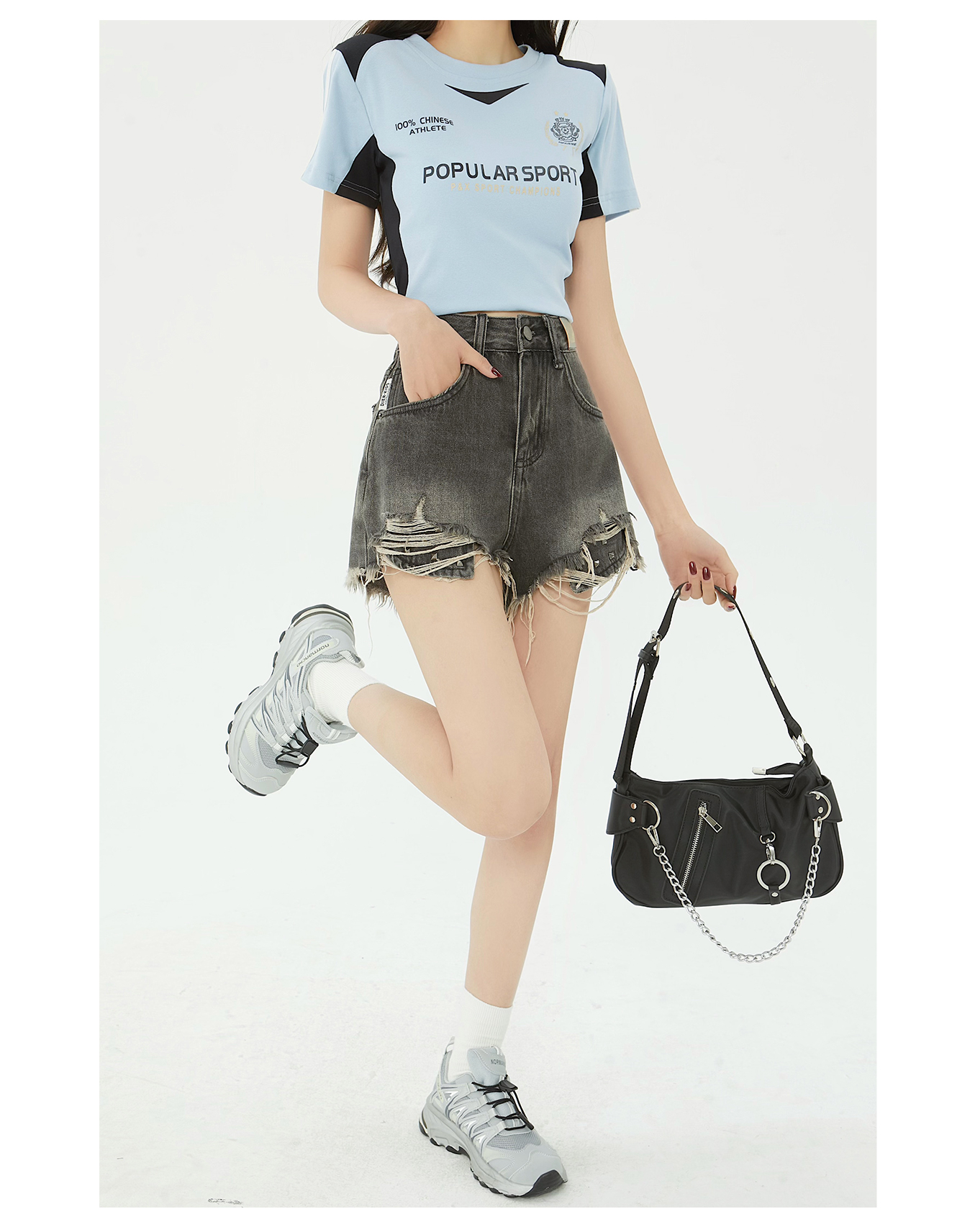 P&X设计师2025夏季新款辣妹破洞百搭牛仔短裤825227174 黑色