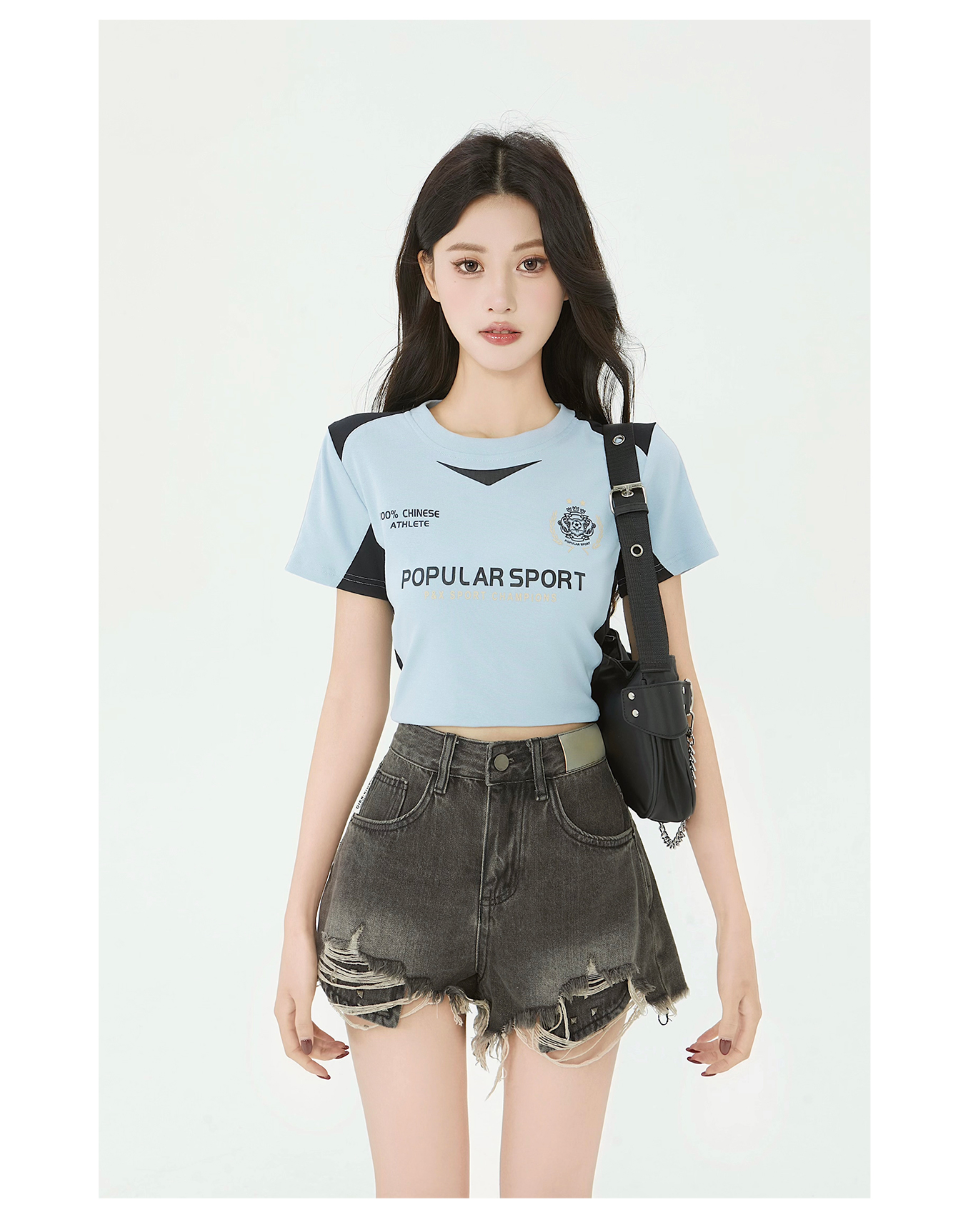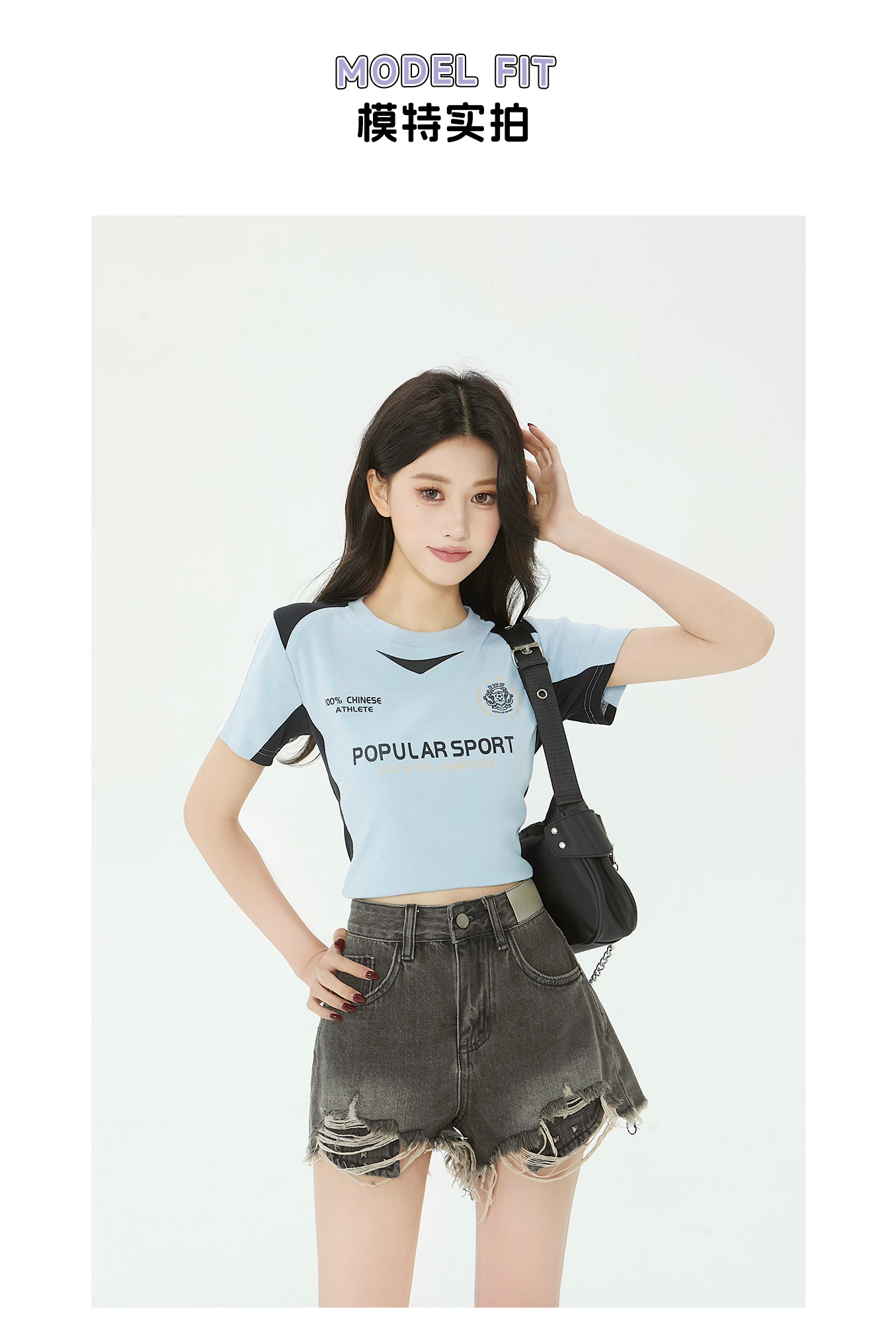 P&X设计师女装2025秋季街头风圆领短款T恤拼接825302208 黑色