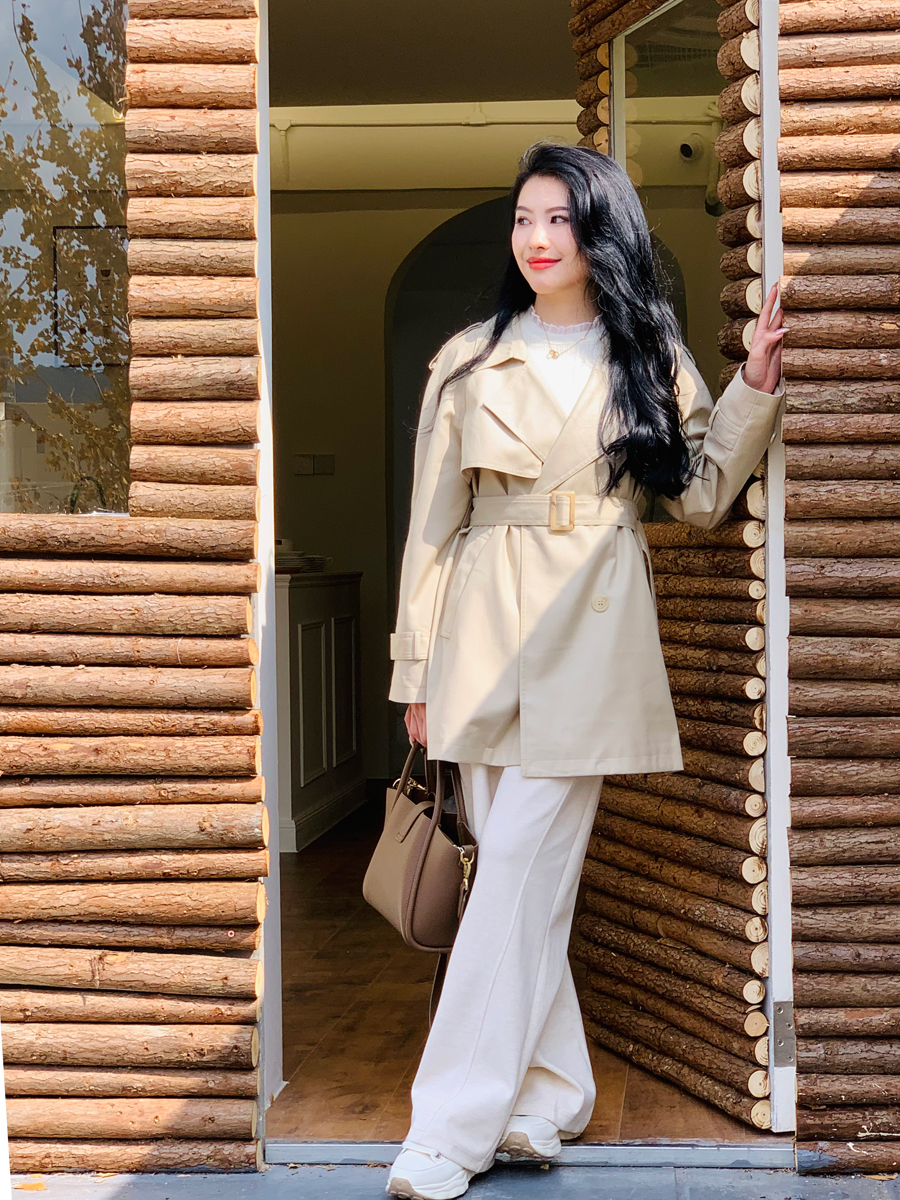 袖章,显得肩膀很平正,轻松穿出直角肩