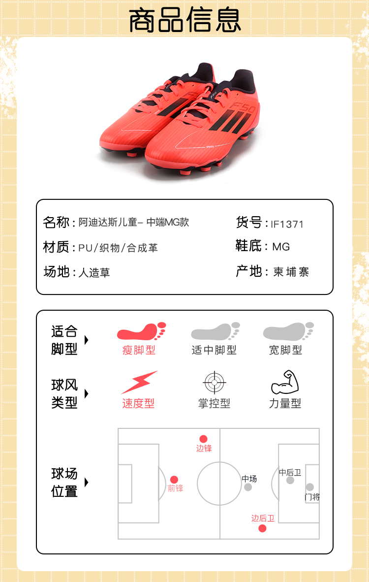 小李子阿迪达斯儿童足球鞋F50 MG短钉足球训练鞋学生男女孩IF1371