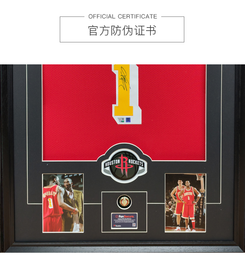 收藏系列 麦迪 火箭队1号 球员版 亲笔签名球衣