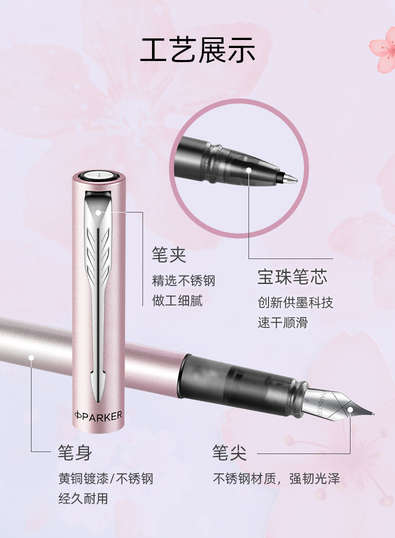 PARKER/派克钢笔2021新品威雅XL樱花粉墨水笔特别版礼盒装男女学生情侣生日礼品送礼可爱少女心签字笔