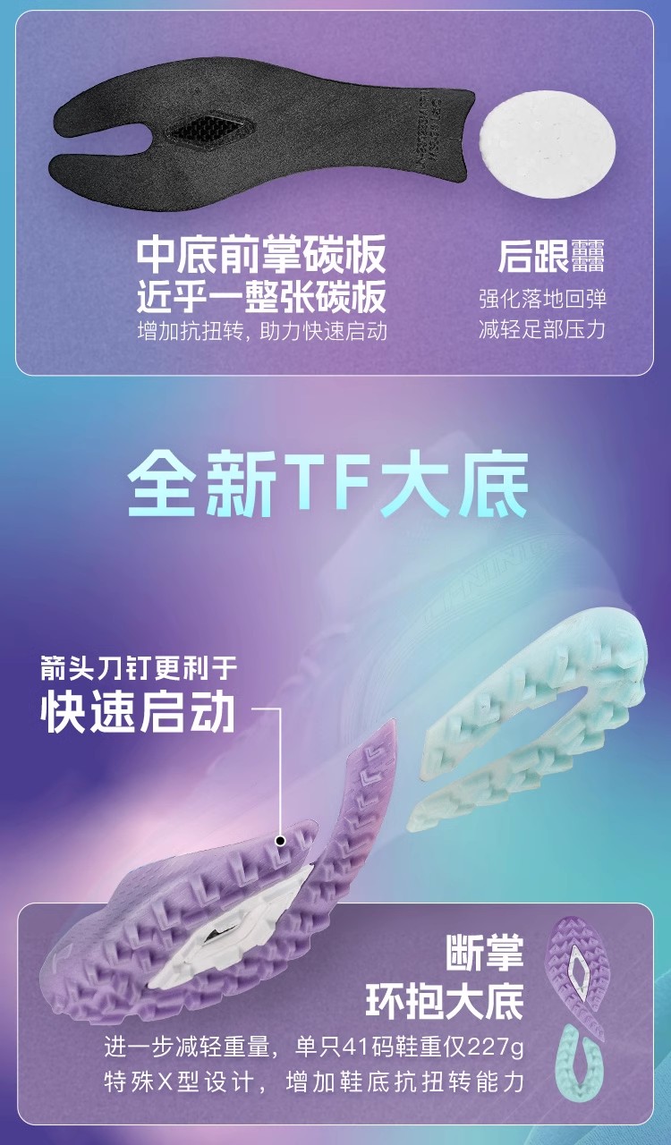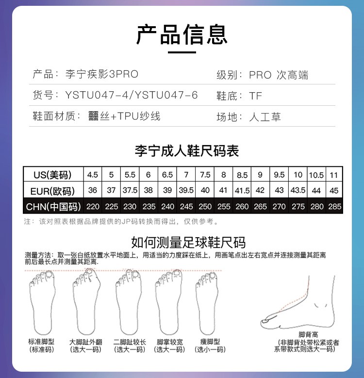 【中超球员同款】李宁疾影3次顶PRO TF碎钉䨻缓震碳板足球鞋䨻丝覆膜YSTU047-4