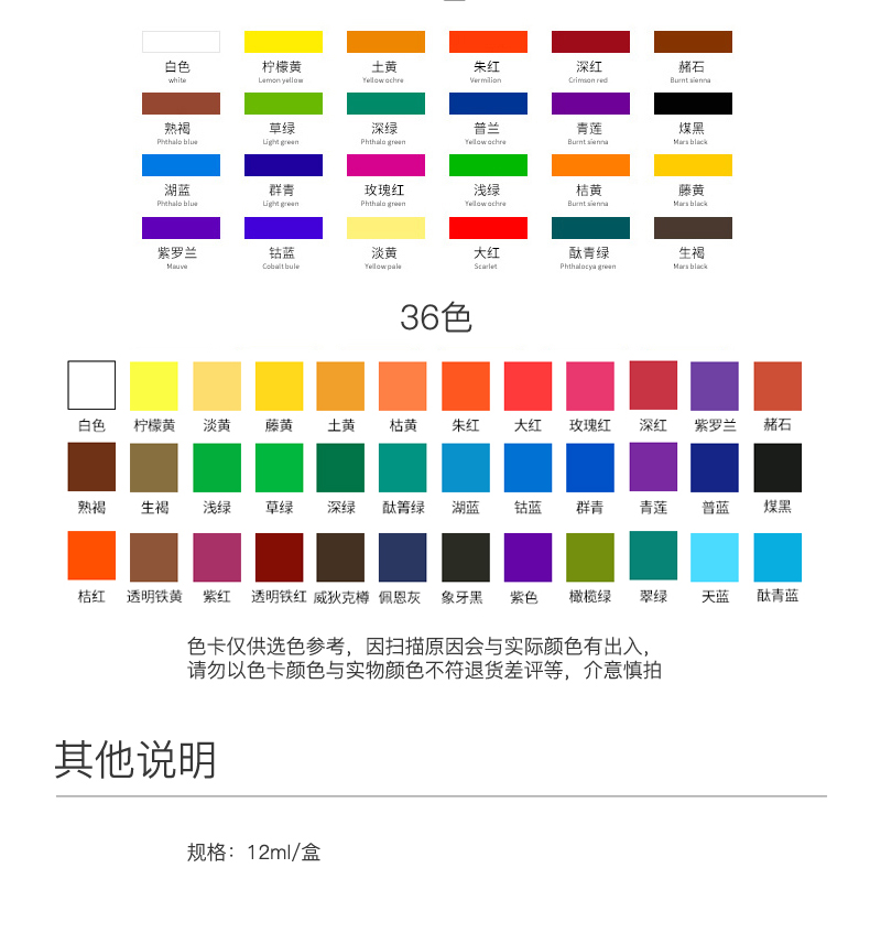 马利铝管水彩色颜料文具绘画美术工具马利水彩颜料12色18色24色36色美术绘画油画初学学生画家