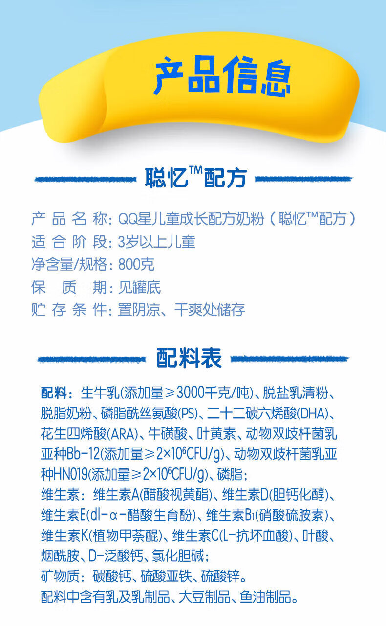 伊利QQ星儿童成长配方奶粉800g