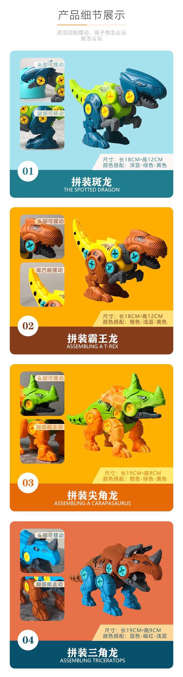 骏辉单只拼装恐龙彩盒装PZ814拼装玩具益智拆装仿真儿童拧螺丝智力开发