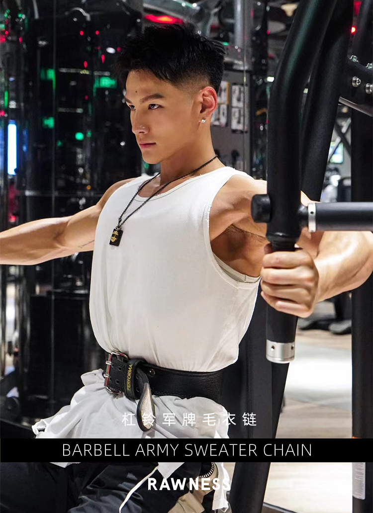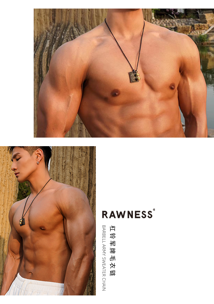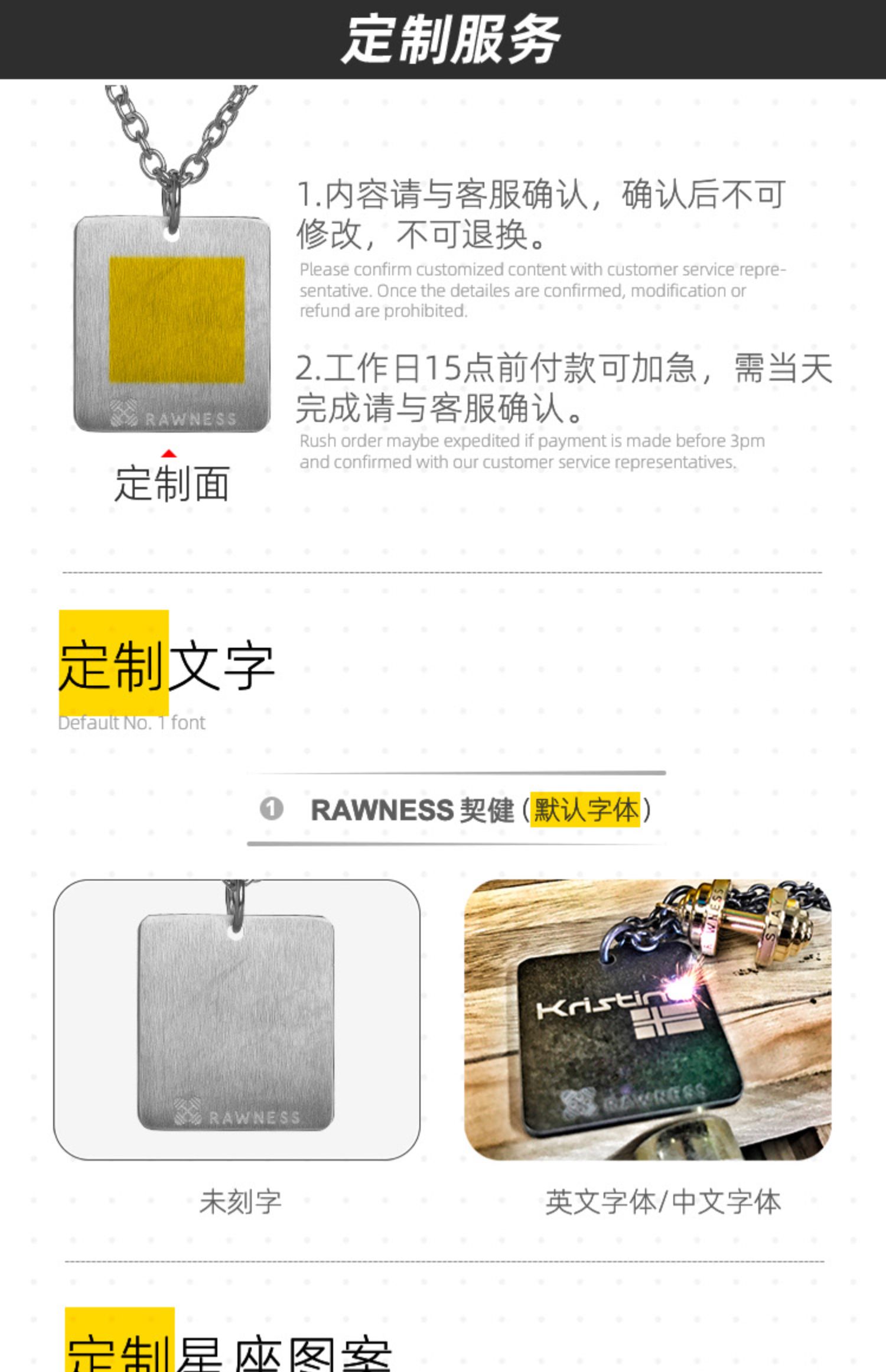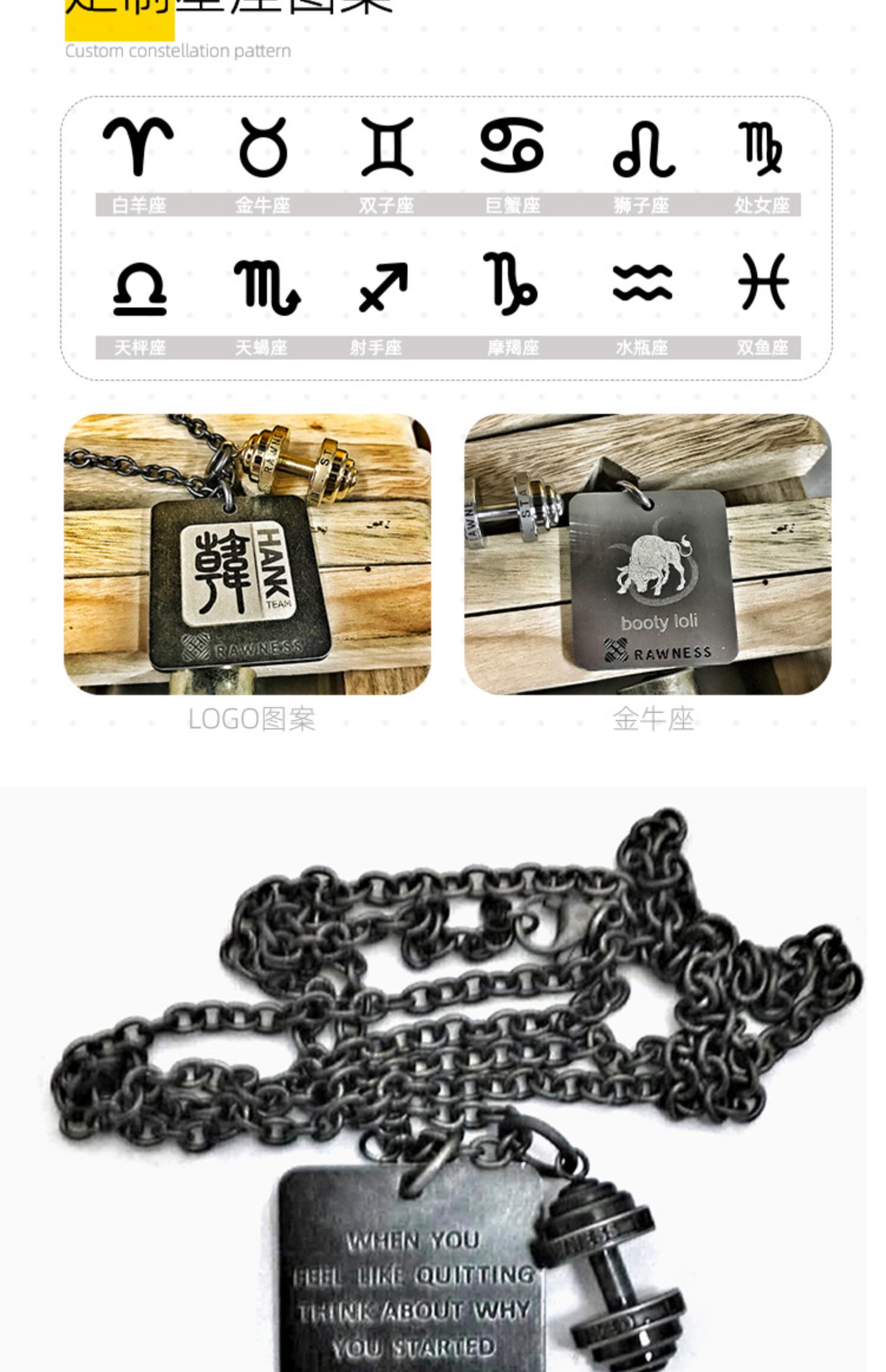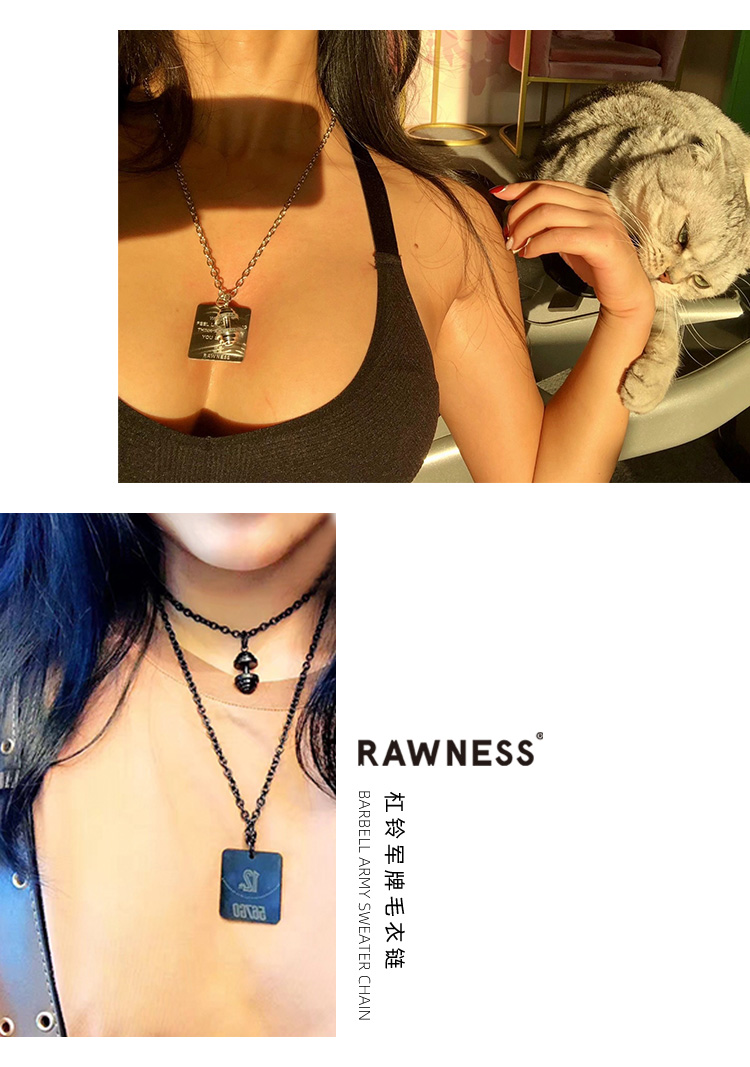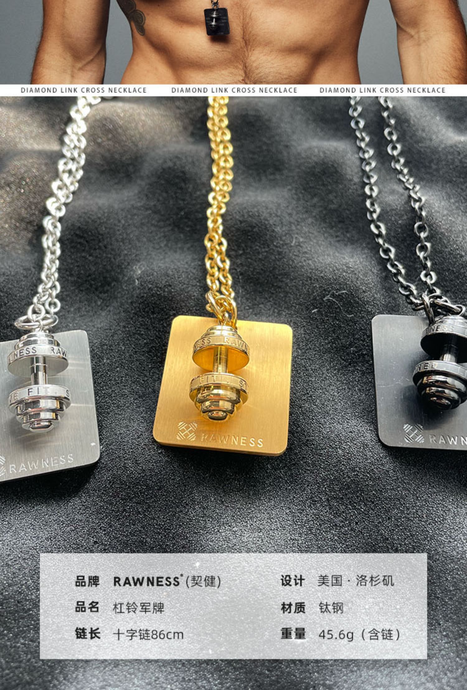 Rawness/契健 哑铃军牌钛钢 银色项链 新年礼物满钻方牌项链 莫桑石定制吊坠 美式小众毛衣链