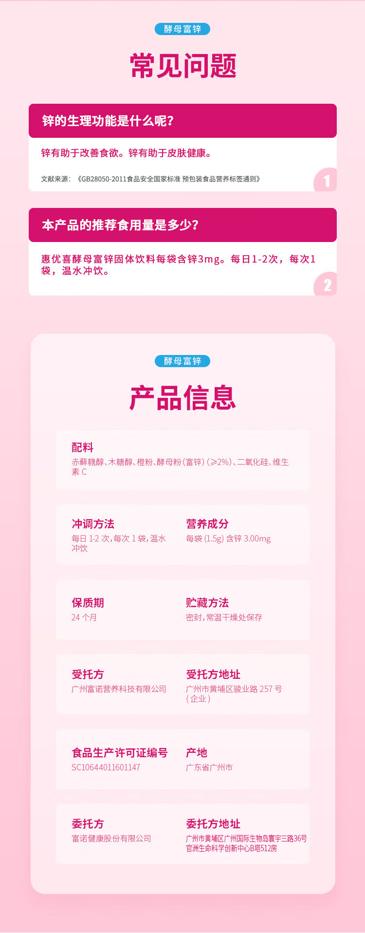 惠优喜富锌酵母固体饮料24袋装