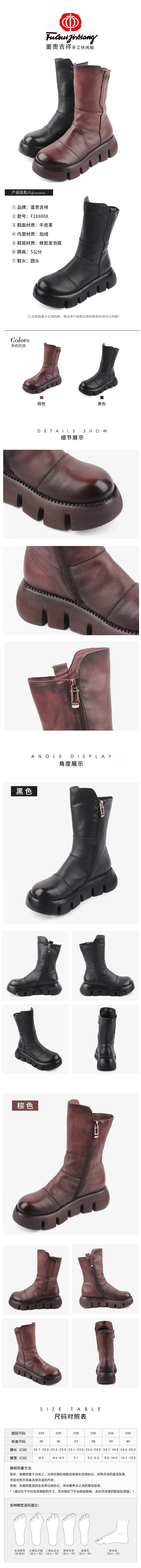 富贵吉祥2021圆头超轻厚底时尚女鞋加绒F218008