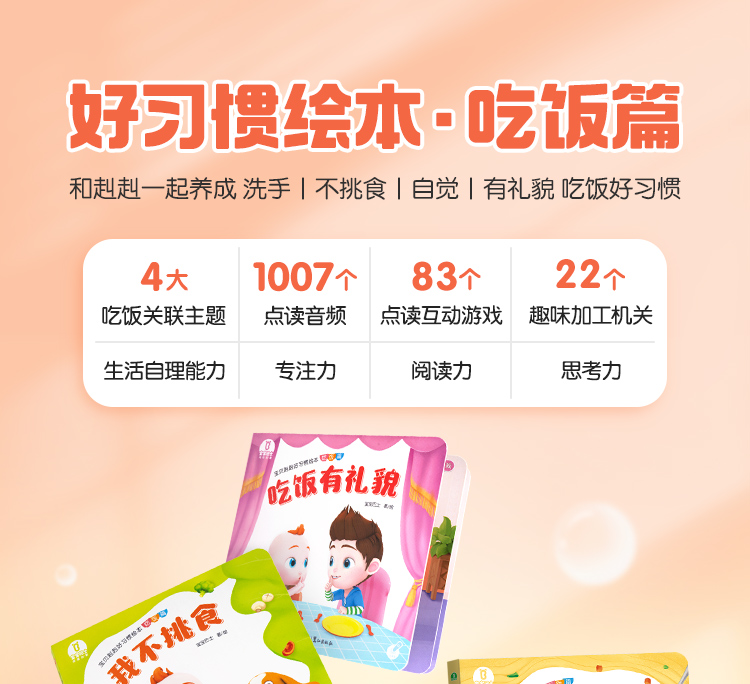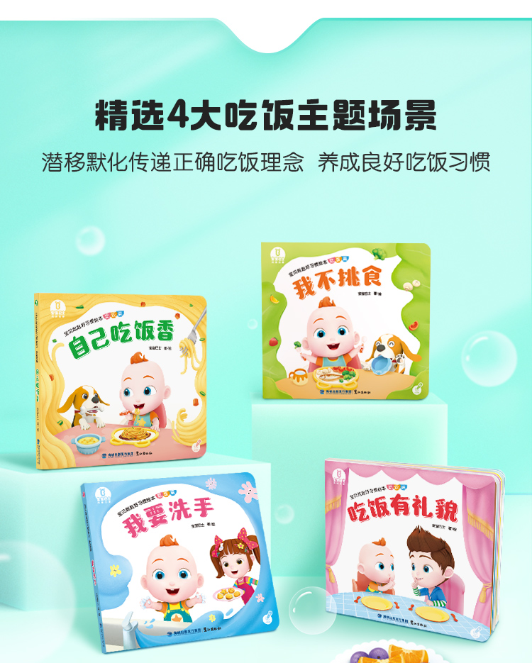【点读版】宝宝巴士绘本2岁+ 宝贝赳赳认知绘本 -吃饭篇/4册(不含笔)