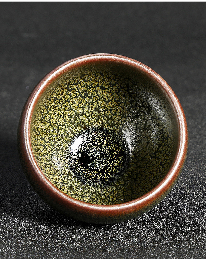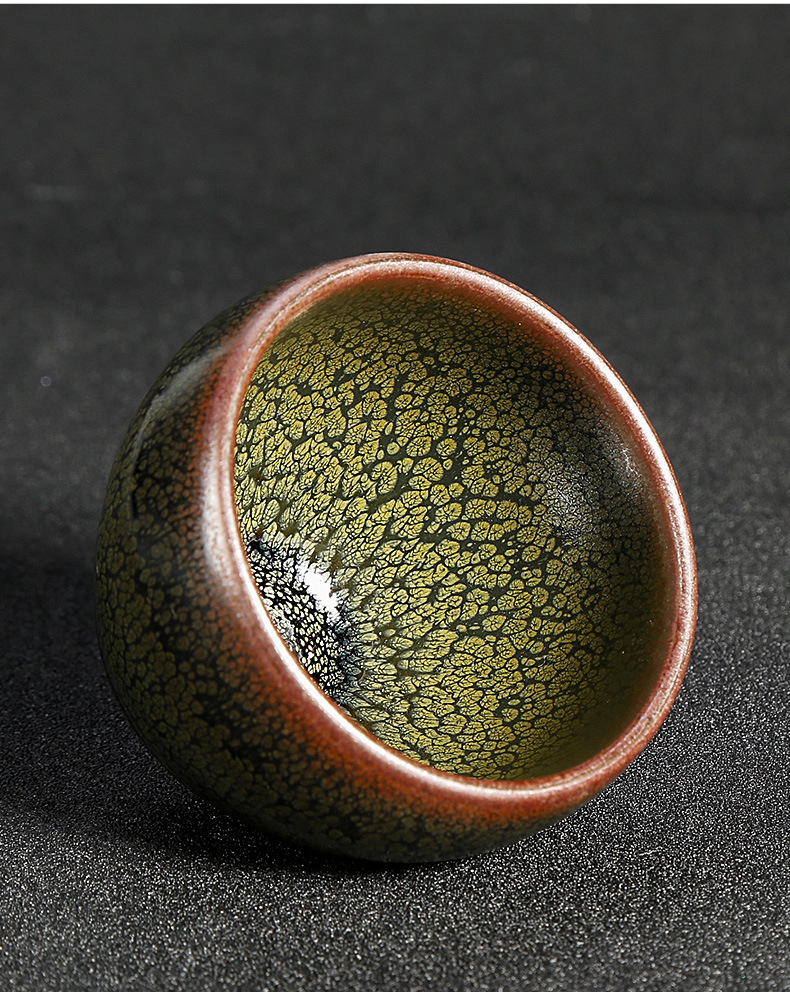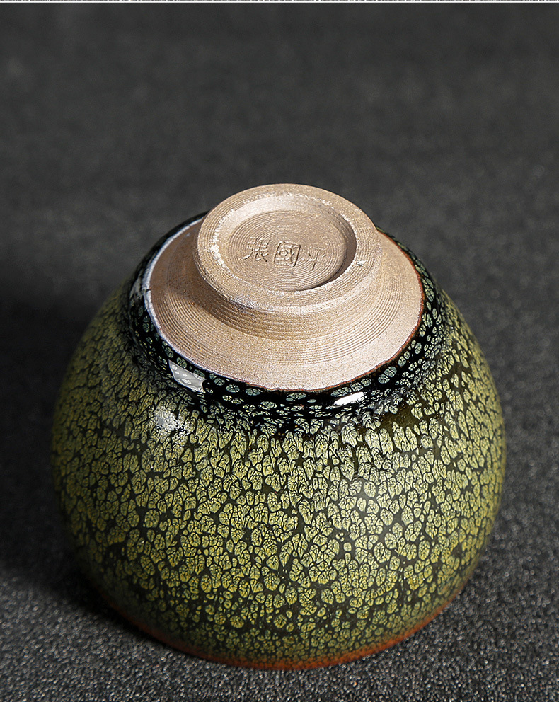 手握杯建阳正品窑铁胎绿鹧鸪斑建盏批发杯茶具主人杯大杯天目茶杯