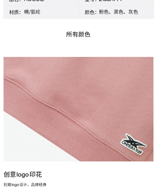 Tiger鬼塚虎HOODIE中性时尚套头长袖卫衣2183A771-700
