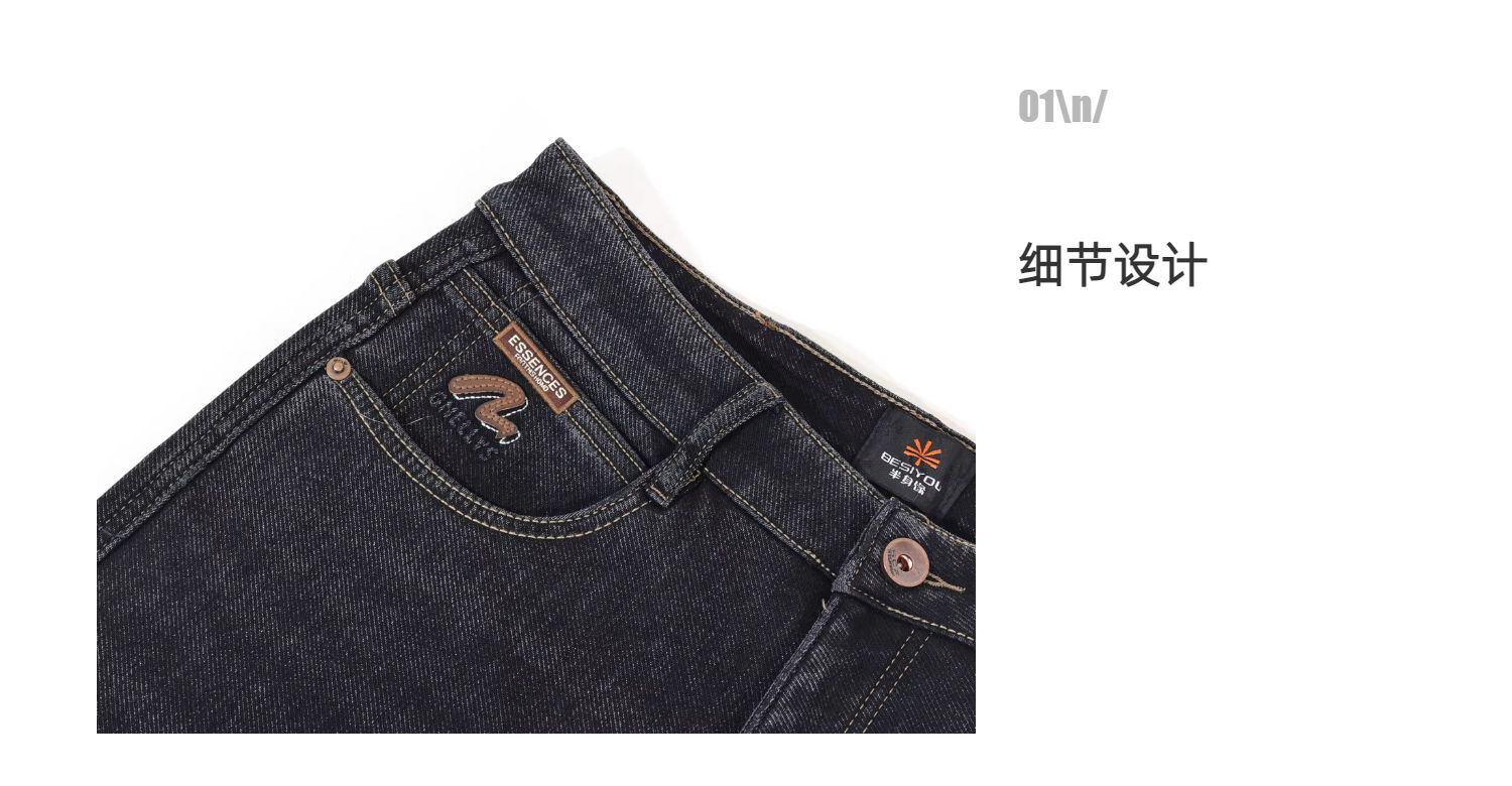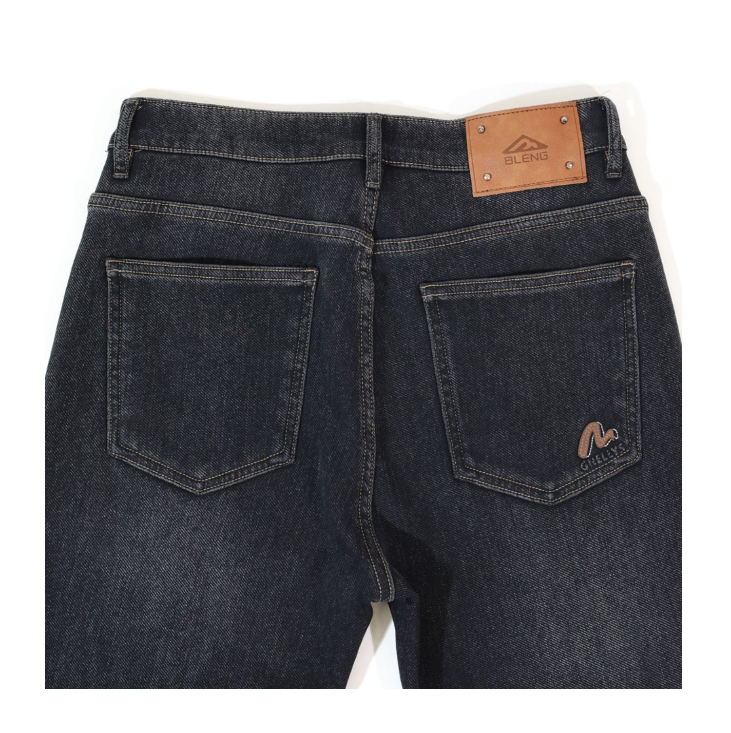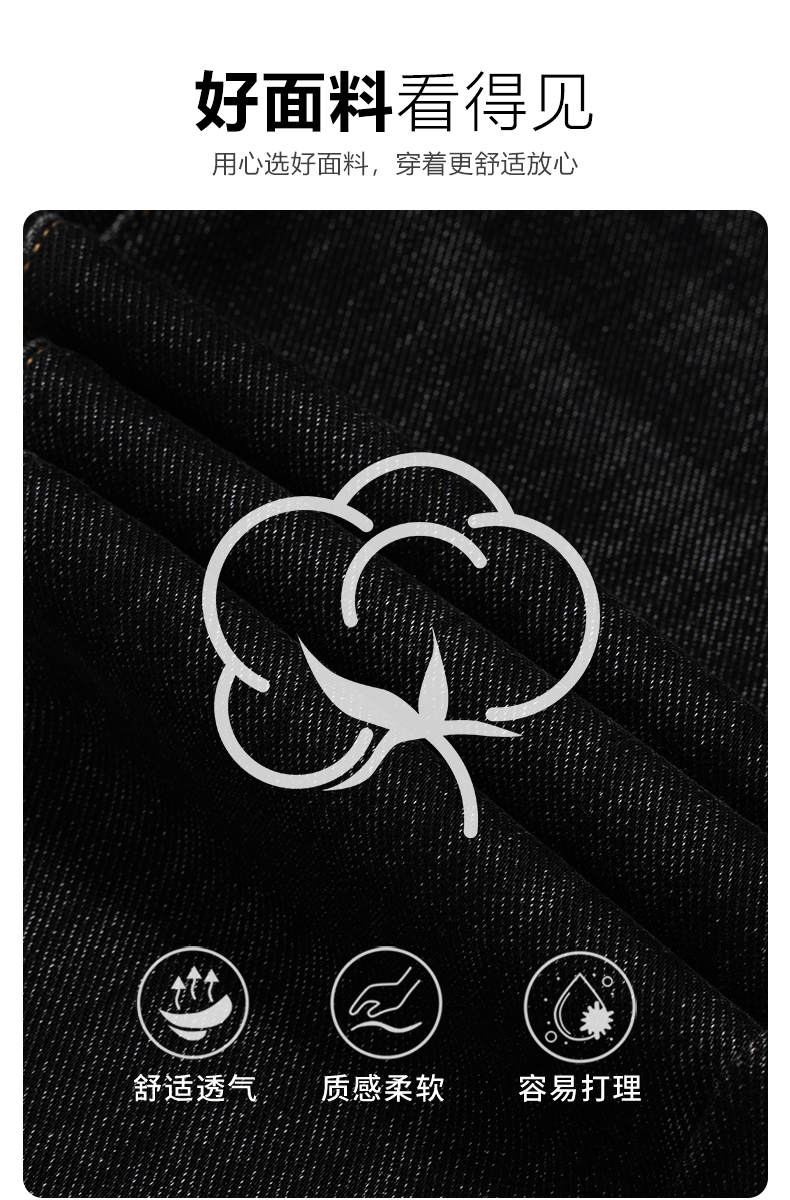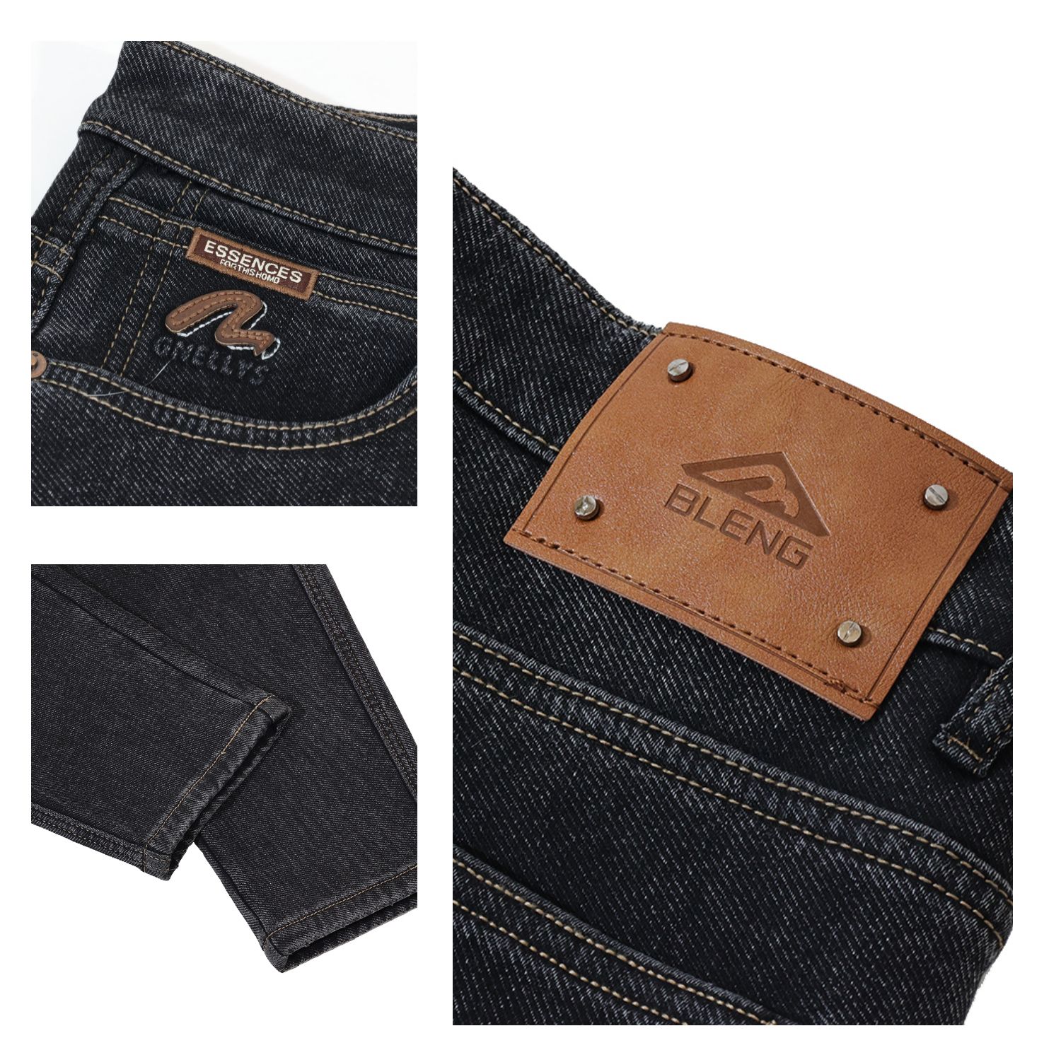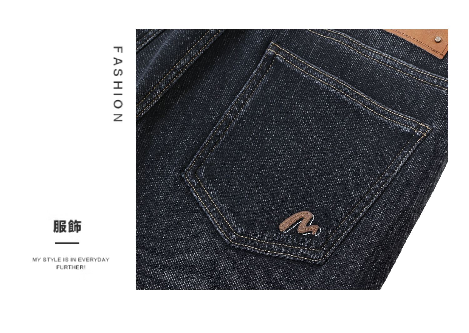 半身缘男裤 冬季小直筒潮牌抓绒厚款高弹牛仔裤254201U10130169