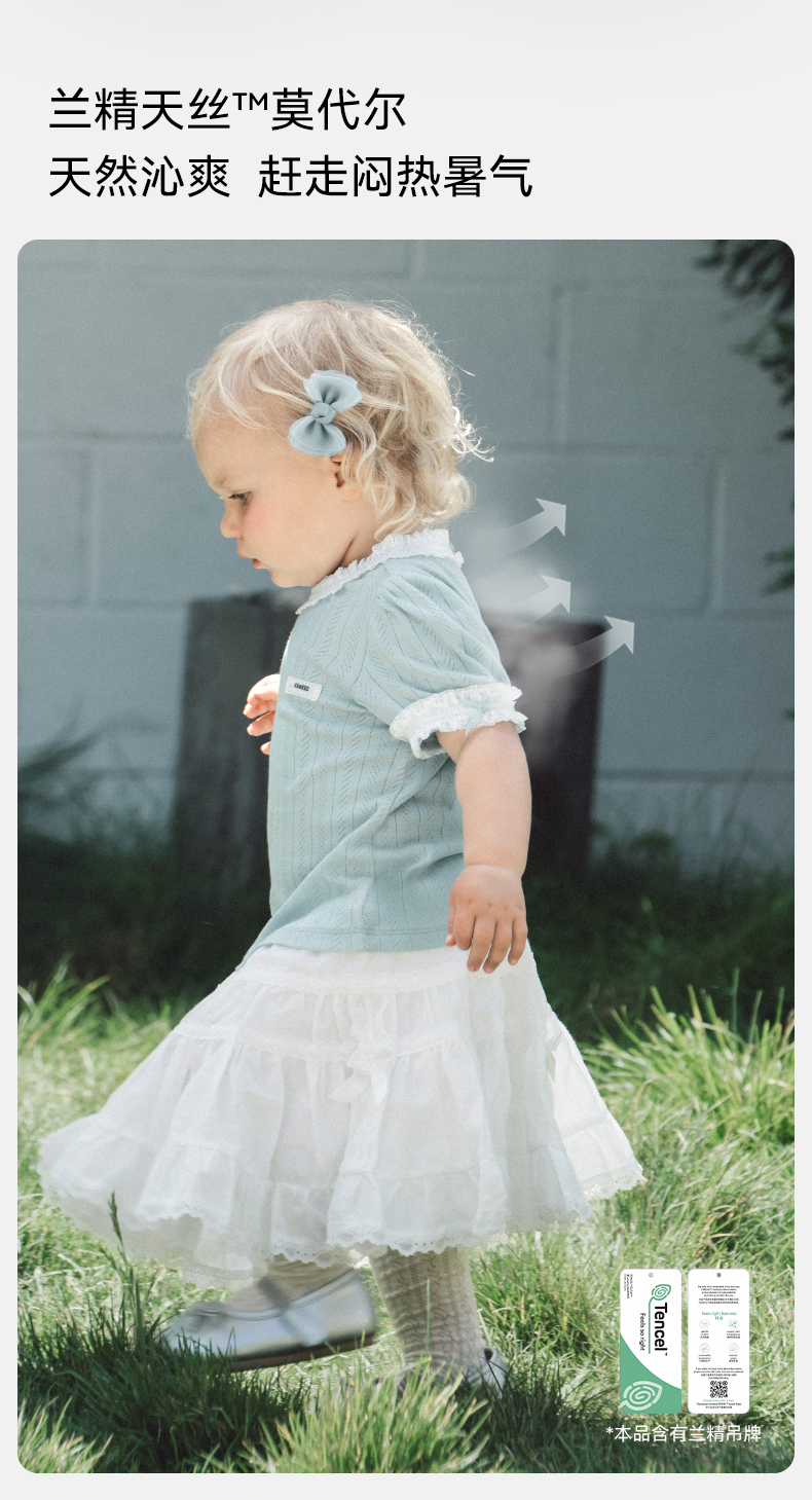【宝宝服饰】嫚熙童装儿童短袖T恤2025新款女童薄款女宝透气莫代尔婴儿上衣夏