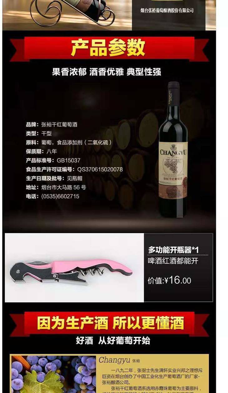张裕彩龙干红葡萄酒 整箱750ml*6瓶包邮