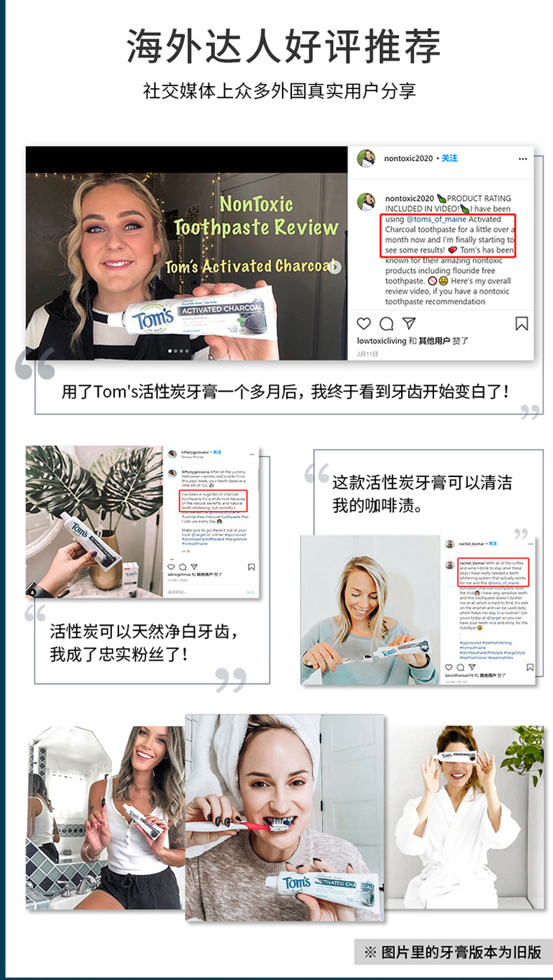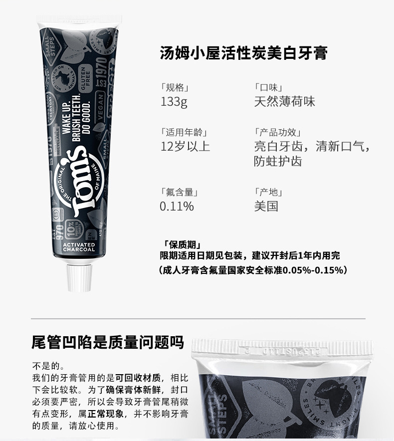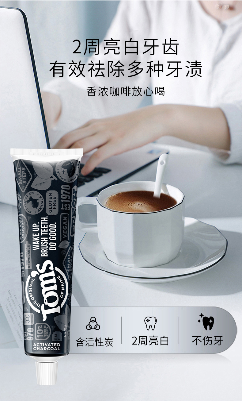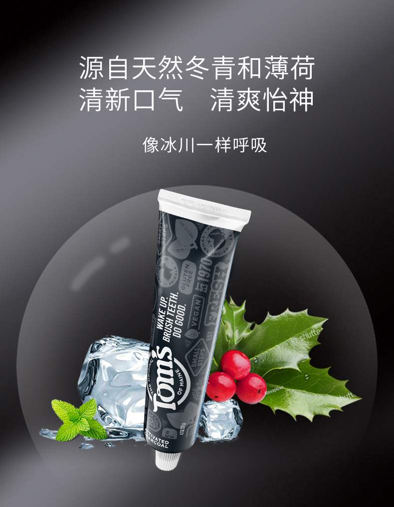【品名】Toms汤姆小屋成人牙膏天然光曜亮白活性炭牙膏113g