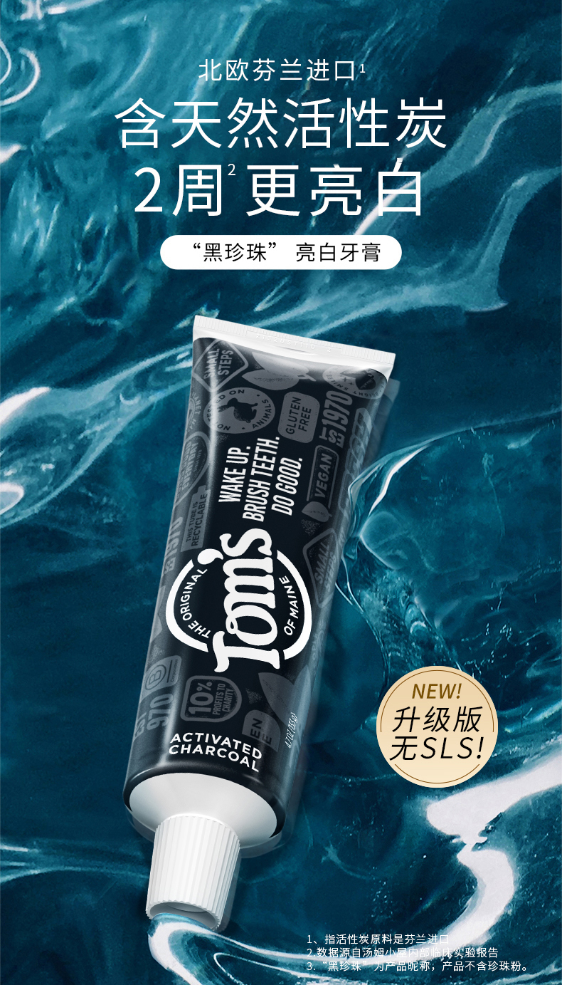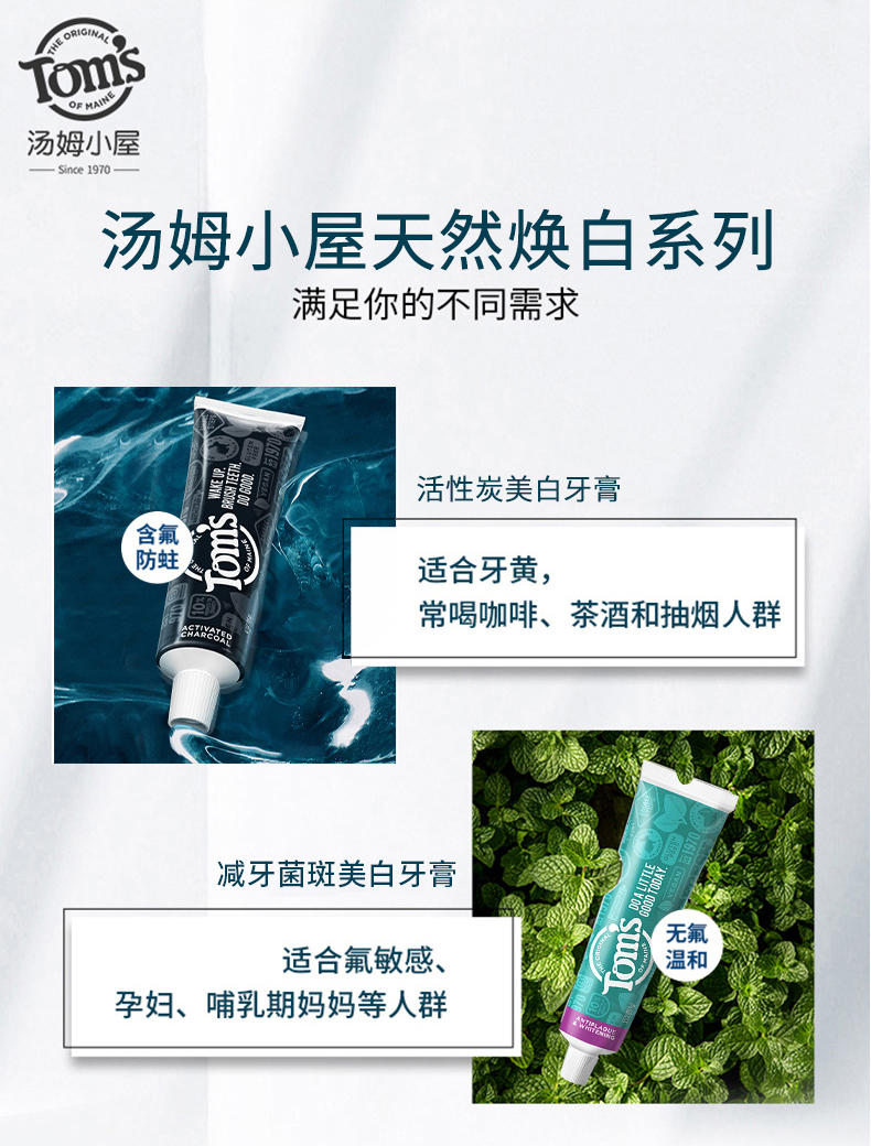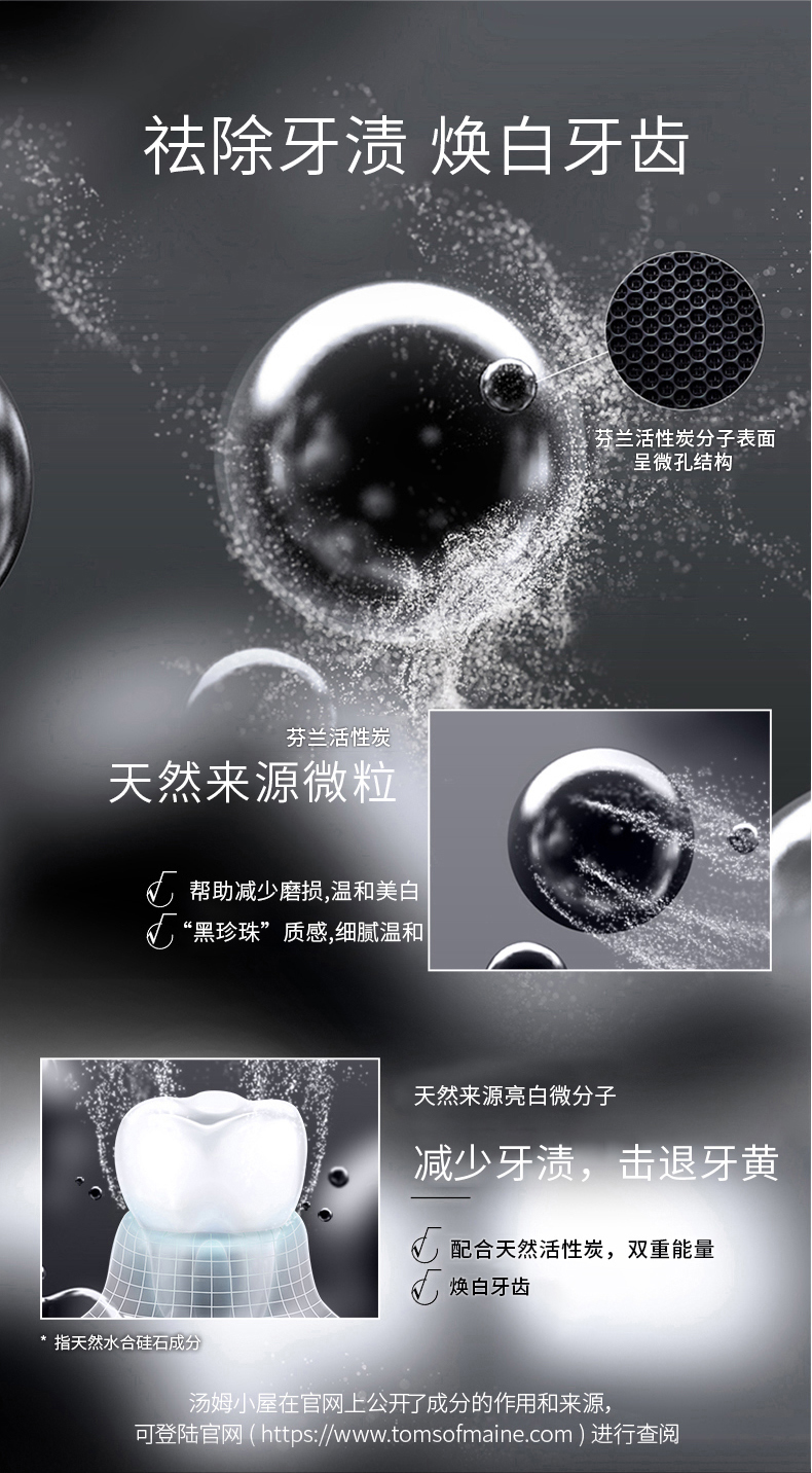 【品名】Toms汤姆小屋成人牙膏天然光曜亮白活性炭牙膏113g