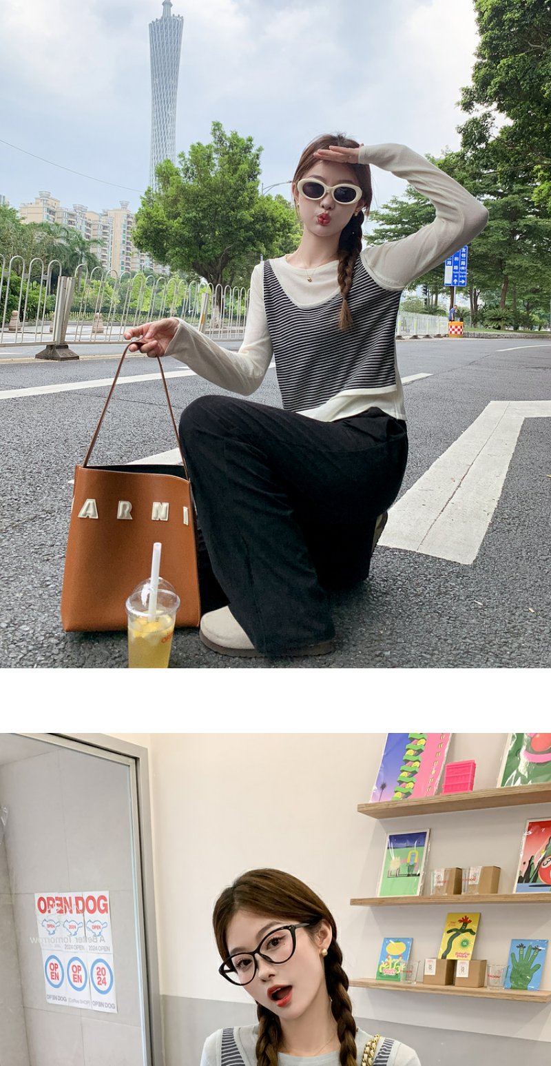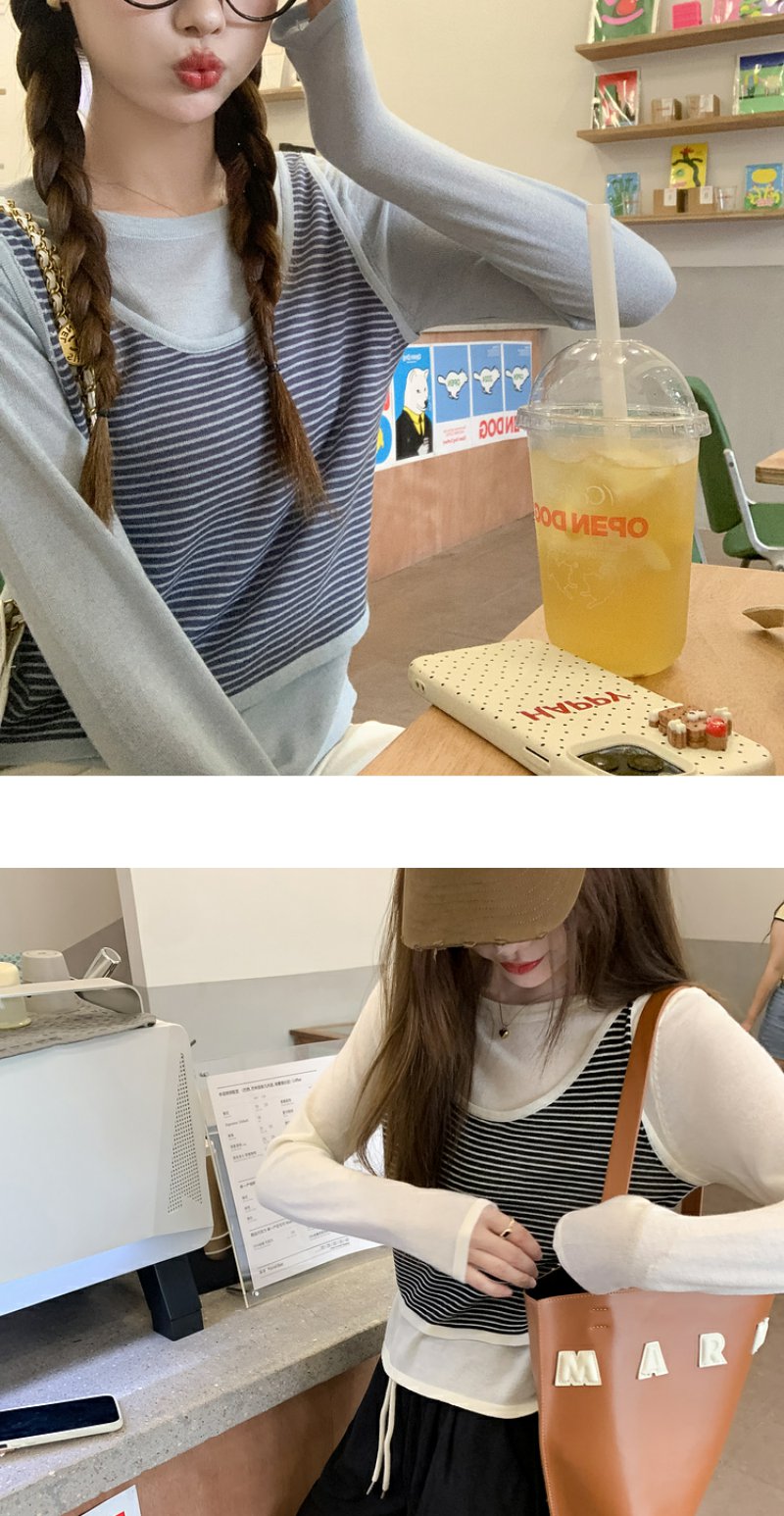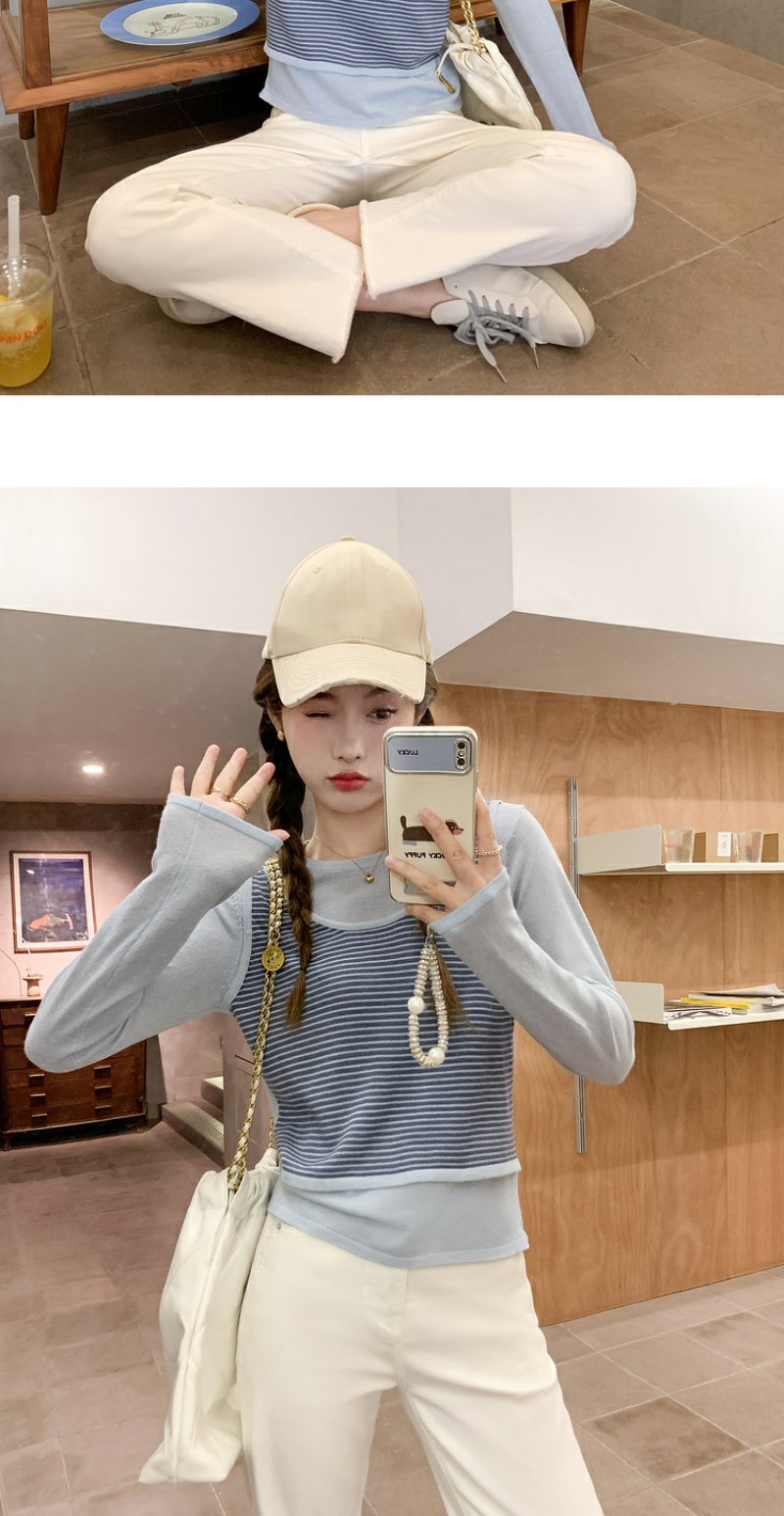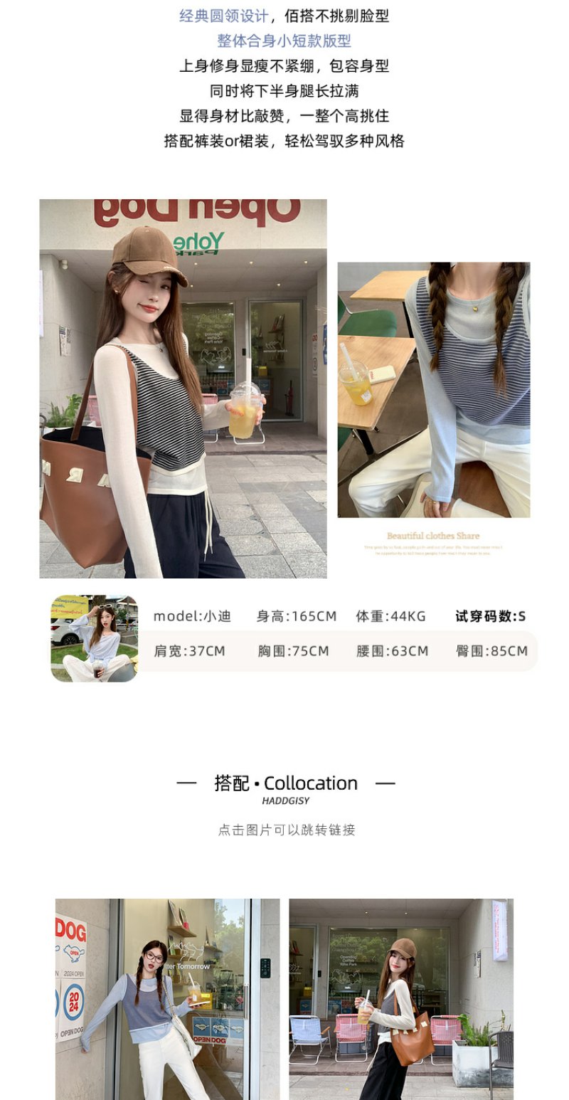 <曾小咸推荐>【时髦调性】2色假两件条纹毛织衫