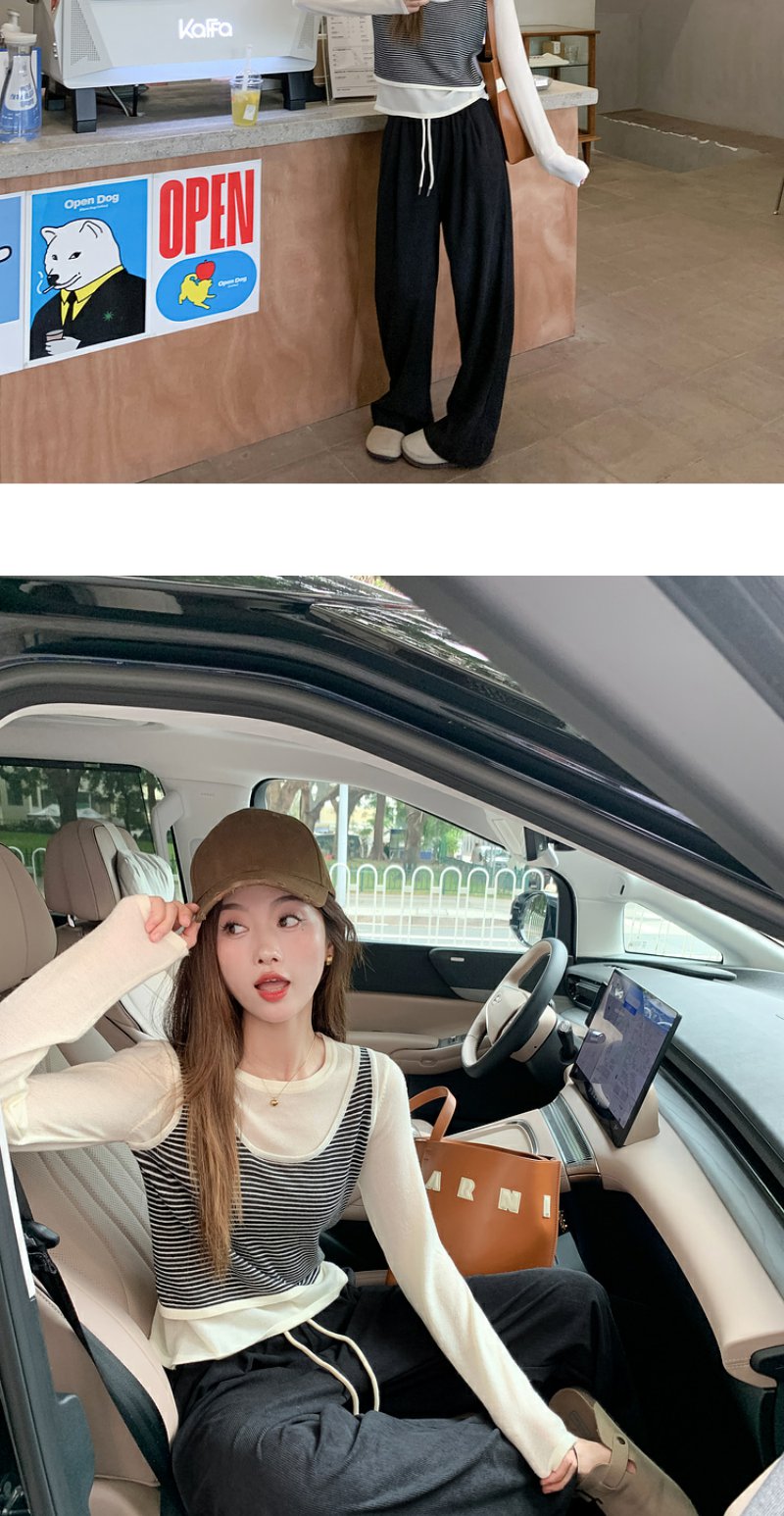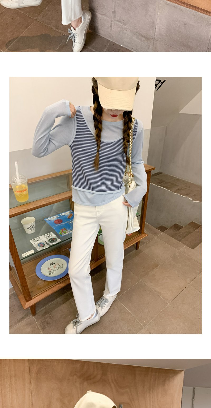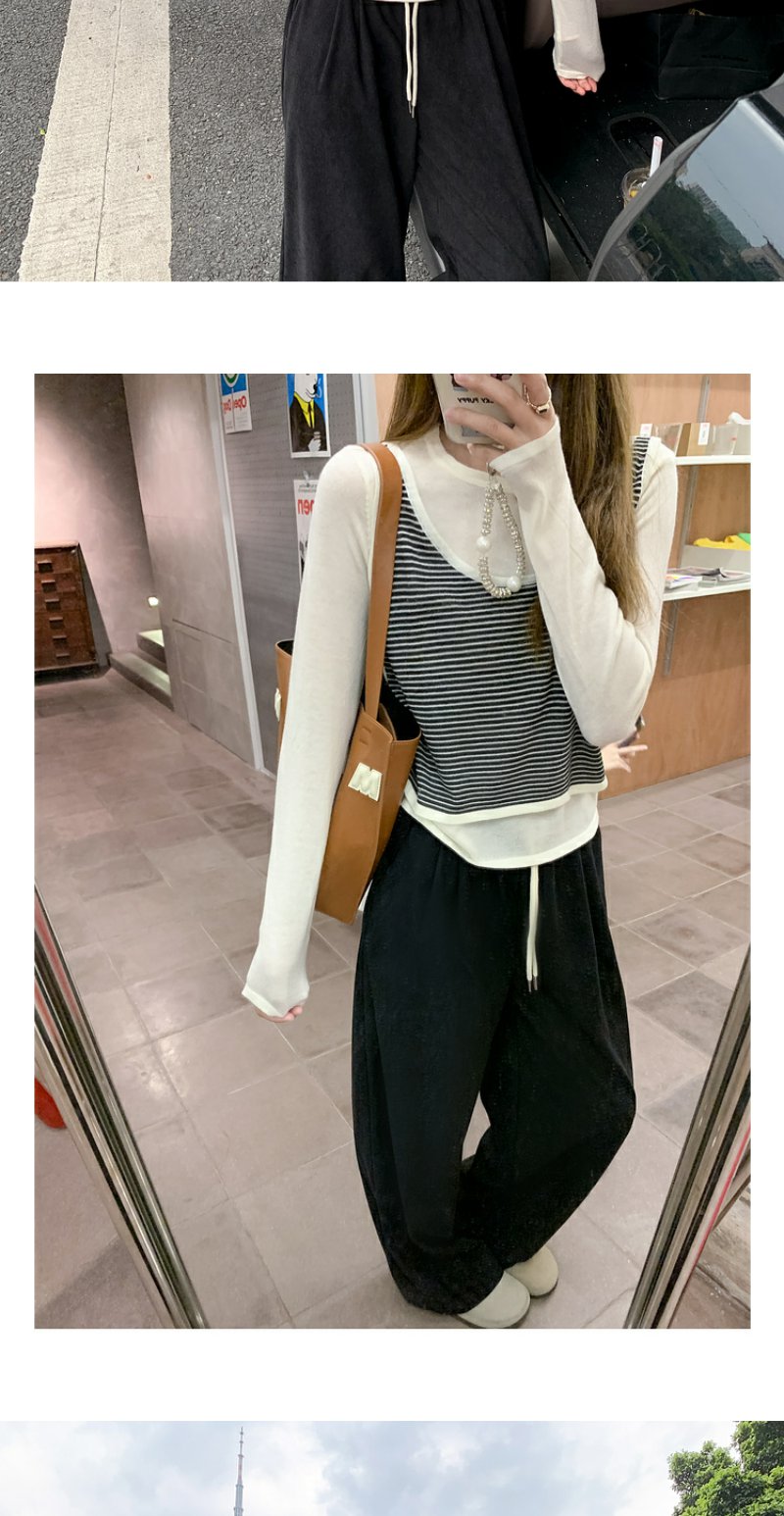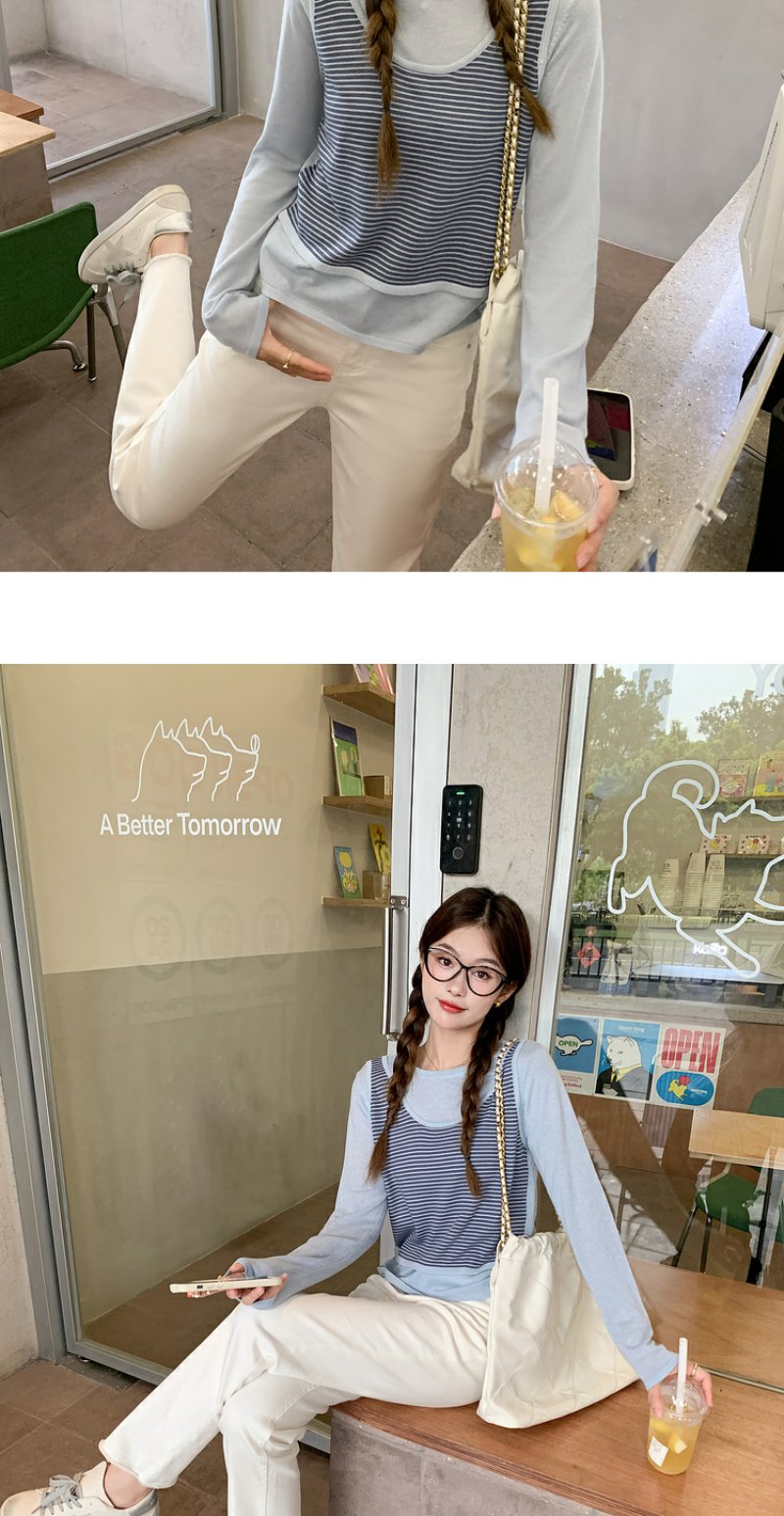 <曾小咸推荐>【时髦调性】2色假两件条纹毛织衫