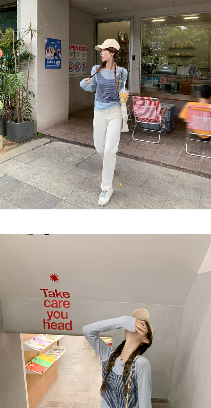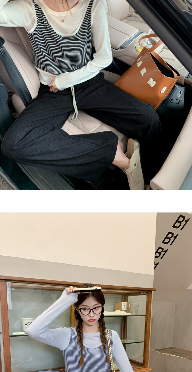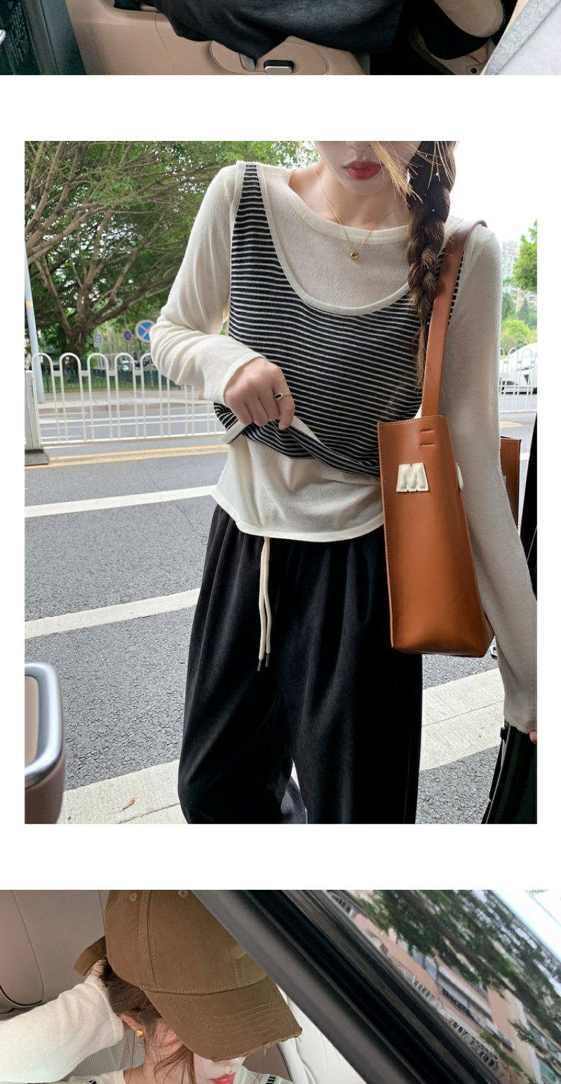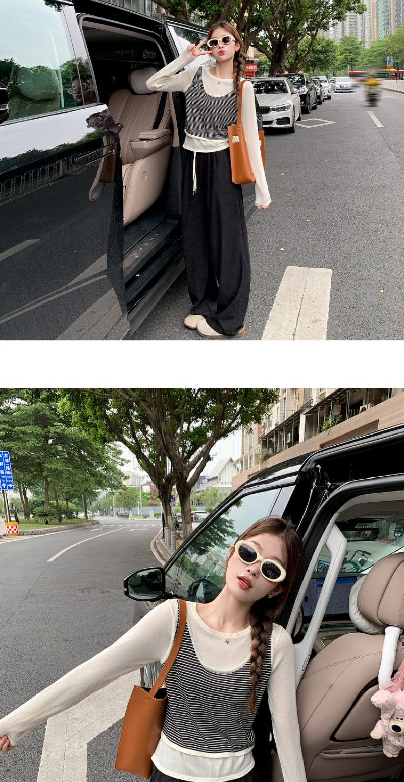 <曾小咸推荐>【时髦调性】2色假两件条纹毛织衫